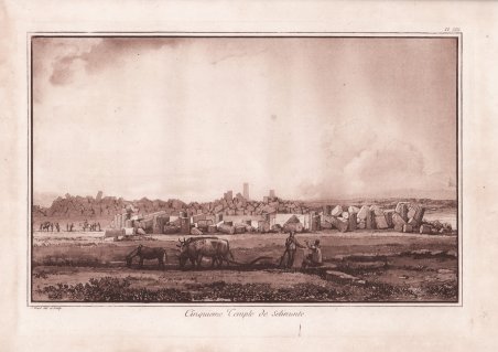 Tratta dalla celebre opera di Jean Houel Voyage Pittoresque des Isles de Sicile, de Lipari et de Malte[.] edita a Parigi, in quattro volumi, tra il 1782-87. Dopo un primo breve tour in Sicilia e a Malta nel 1770, Jean-Pierre-Louis-Laurent Hoüel nel 1776, dopo aver ottenuto il finanziamento dal re Luigi XVI, decide di compiere il Grand Tour in Sicilia finalizzandolo alla pubblicazione di un’opera che illustri le antichità, i fenomeni naturali, gli usi e i costumi dell’isola. L’artista aveva preventivato di restare in Sicilia un anno, ma gli sarà necessario un periodo di oltre tre anni, fino al giugno del 1779. Hoüel terrà un Journal, ovvero un diario diviso in più quaderni, al quale affidare impressioni ed annotare itinerari ed incontri; servirà anche per tracciare veloci schizzi delle amate antichità e per redigere il testo dell’opera che pubblicherà. Dai “quaderni” si apprende, inoltre, che l’itinerario esposto nei quattro volumi sarà virtuale perché in realtà Hoüel visiterà alcune città più volte per osservare, durante l’anno, le festività o altri eventi. Rientrato a Parigi nell’estate del 1779, l’artista salda il suo debito col re offrendo quarantasei vedute eseguite a gouaches, oggi conservate al Louvre. Per pubblicare il suo lavoro aveva bisogno di un ulteriore finanziamento e vendette a Caterina II di Russia oltre cinquecento disegni e dipinti realizzati in Sicilia, parte dei quali, i soli 264 superstiti, si custodiscono all’Ermitage di San Pietroburgo. Del resto, in quegli anni l’abate Saint-Non aveva dato alla luce il primo tomo del suo Voyage (1781-1786), e questa concorrenza non giovò certo alla causa di Hoüel. Lavorerà poi con ferrea disciplina per otto anni a incidere da solo, con la tecnica dell’acquatinta, le 264 lastre di rame del Voyage pittoresque des isles de Sicile, de Malte et de Lipari […], edito a Parigi, in quattro volumi, tra il 1782-87. L’uso dell’acquatinta nei toni del seppia consentirà all’autore di ottenere incisioni con effetti chiaroscurali più vicini alla sua sensibilità di pittore. ' Acquatinta stampata in seppia, in eccellente stato di conservazione. A beautifully rendered plate from Voyage Pittoresque des Isles de Sicile, de Malte et de Lipari. Le Voyage Pittoresque by Hoüel is a travel diary characteristic of the 18th century in which the author reveals both his scientific and aesthetic vocation. His book has enormous documentary value due to the accuracy of the illustrations and the richness of the text, which includes didactic notes and autobiographical and travel anecdotes. Hoüel’s journey was funded by the king of France, Louis XVI. Although he was only intending to be in Sicily for one year, he eventually stayed there for four years. His financial support was tendered on the condition that the money advanced by the king should be returned along with the proceeds of the published book. However, the repayment was demanded too soon for Hoüel and the artist decided to repay part of the debt by donating some Sicilian paintings. Forty-six gouaches were chosen to enlarge the Painting Museum of Versailles (today preserved at the Louvre). Eventually, Hoüel and his creditor, the Compte Angiviller (administrator of the King’s properties) went their separate ways and the painter was left to manage the publication of his book himself. The Russian Empress Catherine II became interested in the acquisition of Hoüel’s ‘Cabinet’, comprising approximately five hundred gouaches, for which she paid forty thousand pounds. The works were sent to Saint Petersburg; 240 drawings disappeared and 264 works are now preserved at the HermitageMuseum. The four folio volumes of the VOYAGE PITTORESQUE DES ISLES DE SICILE, DE MALTE ET DE LIPARI, où l’on traite des Antiquités qui s’y trouvent encore; des principaux Phénomènes que la Nature y offre; du Costume des Habitans, & de Quelques Usages was printed from 1782-1787. They contain 264 aquatint plates on 263 leaves (plates 245 and 246 printed on the same leaf), all printed in sepia. ' Aquatint engraving printed in sepia on laid paper, very good condition. Cfr. Cremonini pagg. 129/132, 74.