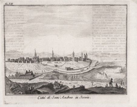 Veduta della città tratta dall’edizione italiana dell’opera di Thomas Salmon ' Lo stato presente di tutti i paesi e popoli del mondo naturale, politico e morale con nuove osservazioni degli antichi e moderni viaggiatori. Scritto in inglese dal signor Salmon. Tradotto in Ollandese, e Francese, Tedescho ed ora in Italiano. In Venezia, Presso Giambattista Albrizzi MDCCXXXVII-MDCCLVI (1737-66). L’opera - in ventisette volumi - il cui titolo originale era ' Modern history, or the present state of all nations, ' fu tradotta dall’inglese e stampata in Venezia dall’Albrizzi nell’arco di svariati anni; traccia un’analisi storica delle nazioni del mondo, arricchita dalla descrizione geografica e artistica delle città. All’interno sono presenti preziose incisioni su rame che raffigurano il territorio, le vedute e i monumenti. Comunemente si attribuiscono le tavole al Salmon in quanto i volumi dell'Albrizzi sono la traduzione in lavoro che apparve tra il 1725 e il 1739 a Londra in 32 volumi. Tuttavia, le carte geografiche contenute nell’opera sono le stesse che Albrizzi utilizza per il suo Atlante Novissimo, che contiene tutte le parti del mondo del 1740 (volume 1) - 1750 (volume 2), derivanti dalle opere di Guillaulme de L’Isle e Iasaak Tirion. Le stesse piante prospettiche e vedute contenute nel Lo stato presente di tutti i paesi e popoli del mondo sono altrèsì da assegnare all’Albrizzi in qualità di editore. L'autore andava particolarmente fiero di questa collana perché questo era “il primo libro di viaggi […] che si sia proposto per iscopo la verità e non la meraviglia”. La fortuna della pubblicazione fu eclatante tanto che “arrivato a pubblicare appena l'ottavo tomo mi trovai ben tosto, per esito fortunato, privo d'ogni esemplare”. Giambattista Albrizzi fa parte di una famiglia di tipografi ed editori veneziani di origine bergamasca. Iniziatore dell'attività tipografica fu, negli ultimi decenni del XVII secolo, Girolamo Albrizzi a cui successe il figlio Giambattista, attivo particolarmente nel ventennio 1730-50. Diede grande impulso all'arte tipografica veneziana, legando il proprio nome a una serie di splendide edizioni, per cui si valse della collaborazione dei migliori disegnatori e incisori del tempo: Piazzetta, Zanetti, Pitteri e Bartolozzi. Incisione in rame, in ottimo stato di conservazione. Bibliografia V. Valerio, Cartografi Veneti, p. 139. Plate taken from Lo stato presente di tutti i paesi e popoli del mondo naturale, politico e morale con nuove osservazioni degli antichi e moderni viaggiatori. Scritto in inglese dal signor Salmon. Tradotto in Ollandese, e Francese, Tedescho ed ora in Italiano. In Venezia, Presso Giambattista Albrizzi MDCCXXXVII-MDCCLVI (1737-66). The work - in twenty-seven volumes - whose original title was Modern history, or the present state of all nations, was translated from English and printed in Venice by Albrizzi in the space of several years; it traces a historical analysis of the nations of the world, enriched by the geographical and artistic description of the cities. Inside there are precious copper engravings that depict the territory, views and monuments. Commonly the plates are attributed to Salmon because the volumes of Albrizzi are the translation in work that appeared between 1725 and 1739 in London in 32 volumes. However, the maps in the work are the same that Albrizzi used for his Atlante Novissimo, che contiene tutte le parti del mondo from 1740 (volume 1) - 1750 (volume 2), derived from the works of Guillaulme de L'Isle and Iasaak Tirion. The same perspective plans and views contained in Lo stato presente di tutti i paesi e popoli del mondo are also to be assigned to Albrizzi as editor. The author was particularly proud of this series because this was "the first travel book [.] that has proposed for its purpose the truth and not the wonder. The fortune of the publication was so striking that "when I arrived to publish just the eighth volume, I soon found myself, due to a lucky outcome, without any copies". Giambattista Albrizzi is part of a family of printers and publishers of Venice from Bergamo. Start of printing was in the last decades of the seventeenth century, Girolamo Albrizzi was succeeded by his son Giambattista, particularly active in the twenty years 1730-50. He gave great impetus to the art printing Venetian, linking its name to a series of magnificent editions, which earned him the collaboration of the best designers and engravers of the time: Piazzetta, Zanetti, Pitteri and Bartolozzi. Copperplate, in good condition. Bibliografia V. Valerio, Cartografi Veneti, p. 139. Cfr.