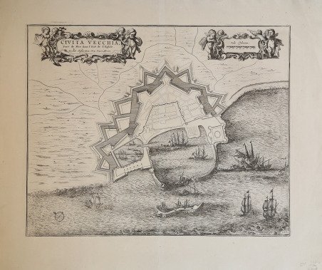 Pianta di Civitavecchia di Johannes Blaeu. ' Opera per la prima volta pubblicata nel ' Theatrum Civitatum et admirandorum Italiae, stampato da Johannes Blaeu ad Amsterdam nel 1663. Esemplare tratto dal ' Nouveau Theatre de l'Italie ' pubblicato ad Amsterdam nel 1704/5 da Pierre Mortier e ristampato da R. Alberts nel 1724. Johannes Blaeu, durante la sua lunga attività editoriale pubblica tre volumi sulle città italiane. Nel 1663 i primi tre, suddivisi in Stato della Chiesa, Roma e Regno di Napoli e Sicilia. Alla sua morte i suoi eredi danno alla luce altri due volumi datati 1682 incentrati sulle città del Piemonte e della Savoia, poi ristampati da altri editori nel 1693 e 1697. ' Il francese Pierre Mortier pubblica una ristampa nel 1704/5, intitolata ' Nouveau Theatre de l’Italie. L’opera è in quattro volumi e comprende le lastre del Blaeu, ritoccate e modificate in piccola parte, integrate dall’aggiunta di numerose nuove mappe di proprio disegno, raffiguranti le città della parte settentrionale della penisola, racchiuse nel primo volume dell’opera. L’atlante del Mortier venne pubblicato con testo latino, francese ed olandese. La particolarità che differenzia le due edizioni di Blaeu e Mortier è rappresentata dal fatto che il testo non è al verso della singola mappa (che quindi è bianca nel retro), ma si trova all’inizio di ogni singolo volume. Il grande successo dell’opera diede origine ad un’ulteriore ristampa, praticamente identica, curata da R. Alberts ed edita nel 1724/5. Le opere tratte dalla prima edizione del Blaeu, 1663, sono caratterizzate dalla presenza del testo al verso, qui assente. Incisione in rame, in buono stato di conservazione. Bibliografia Koeman pp. 332/338, Cremonini pp. 83-90. Work first included in ' Theatrum Civitatum et Admirandorum Italiae ad aevi veteris & praesentis temporis faciem expressum à Ioanne Blaeu G. F., ' printed by Johannes Blaeu, Amsterdam, 1663. Example taken from ' Nouveau Theatre de l'Italie ' - Amsterdam nel 1704/5 - by Pierre Mortier or from the da R. Alberts issue (1724). Without descriptive text on the back. The ' Theatrum Civitatum et Admirandorum Italiae ' is the first monumental town book entirely covering Italy, preceded by the "pocket-size" ' Italia Hodierna ' by Jodocus Hondius jr. (1627) and realized in likely competition with Johannes Janssonius who, in 1657, published the ' Theatrum praecipuarum urbium, ' containing a volume dedicated to Italy. Johannes Blaeu, during his long editorial activity published three volumes on Italian cities. In 1663 the first three, divided into the State of the Church, Rome and the Kingdom of Naples and Sicily. At his death his heirs gave birth to two more volumes dated 1682 focused on the cities of Piedmont and Savoy, then reprinted by other publishers in 1693 and 1697. Pierre Mortier publishes a reprint in 1704/5, entitled ' Nouveau Theatre de l'Italie. The work is in four volumes and includes the plates of Blaeu, retouched and modified in small part, supplemented by the addition of several new maps of his own design, depicting the cities of the northern part of the peninsula, enclosed in the first volume of the work. Mortier's atlas was published with Latin, French and Dutch texts. The great success of the work gave rise to a further reprint, virtually identical, edited by R. Alberts and published in 1724/5. Literature Koeman, ' Atlas Neerlandici, pp. 332/338; Cremonini pp. 49-52, 39. Cfr.