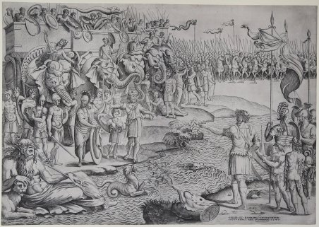 Bulino, 1521-23 circa, da un soggetto attribuito a Giulio Romano. Esemplare nel primo stato di tre o secondo di quattro, con l’indirizzo di Antonio Salamanca e la data 1541.Magnifica prova, ricca di toni, impressa su carta vergata coeva con filigrana “Balestra nel cerchio con giglio” (Briquet 760, carta databile alla prima metà del XVI secolo), rifilata al rame, in ottimo stato di conservazione. L’incisione raffigura l’incontro tra Annibale e Scipione, prima della battaglia di Zama, durante la seconda Guerra Punica, svoltasi nel 202 a.C, secondo la narrazione fornita da Tito Livio (Storie, XXX 29 e 30. 1-2). Sulle due sponde del fiume, personificato da una divinità incoronata, in basso a sinistra, sono: sulla destra, Scipione, accompagnato da due portabandiera e due ragazzi; sulla sinistra, Annibale, con la sua armata, gli elefanti e la cavalleria. Il soggetto corrisponde alla dodicesima scena degli arazzi del ciclo ' Gesta di Scipione. ' La serie completa di arazzi legata alla figura di Scipione è formata da due gruppi distinti: 13 rappresentazioni delle ' Gesta di Scipione ' hanno per fonte letteraria Tito Livio, e i Trionfi di Scipione – di 9 scene – basati sulla descrizione dello storico Appiano. La serie fu commissionata da Francesco I di Francia, nel luglio del 1532, all’imprenditore Marc Crétif, di Bruxelles. Completata nel 1535, fu distrutta nel 1797 per ordine del direttore della Garde_Meuble, Vilette, perché aveva bisogno dell’oro degli arazzi per pagare i suoi dipendenti. I cartoni dei Trionfi furono realizzati da Giulio Romano, mentre quelli della Gesta erano tradizionalmente attribuiti a Giulio e al Penni. ' Vasari, in riferimento ad un’incisione anonima del Colloquio di Annibale e Scipione scrive che il disegno risale a Giulio. Al Louvre è conservato un disegno che corrisponde, in controparte e nelle linee generali, alla stampa. Un altro bozzetto della scena,conservato a Parigi, reca l’iscrizione “Julio Romano”, ma Bacou l’attribuisce al Penni. Quasi tutti i repertori ascrivono l’invenzione di questa scena a Giulio Romano. La Massari ritiene che il disegno sia stato realizzato intorno al 1521-23, prima della partenza dell’artista per Mantova. La stampa è catalogata dal Bartsch tra le incisioni della scuola di Marcantonio, mentre erroneamente è assegnata dal D’Arco a Giorgio Ghisi. L’attribuzione al Dente, sostenuta in passato da Heinecken, Huber, Zanetti e Passavant, e confermata anche dalla Massari, sulla base delle indubbie affinità stilistiche tra questo foglio e altre opere del ravennate, ci sembra assolutamente plausibile. Il primo stato della stampa, ipotizzato da Massari, non è conosciuto attraverso alcun esemplare. Ex collezione Staatliche graphische Sammlung München(Lugt 1613).Eccezionale esemplare. Engraving, around 1521-23, after a subject attributed to Giulio Romano. Example in the first state of three (or the second of four according Massari), with the address of Antonio Salamanca and the date 1541.Magnificent example, rich in shades, printed on contemporary laid paper with watermark "crossbow in the circle with lily" (760 Briquet, paper dating from the first half of the sixteenth century), trimmed to copper, in excellent condition.The engraving depicts the meeting between Hannibal and Scipio, before the battle of Zama, during the Second Punic War, which took place in 202 BC, according to Tito Livio. (Stories, XXX 29 and 30. 1-2).On both sides of the river, personified by a deity crowned, bottom left, on the right are Scipio, accompanied by two standard-bearer and two boys; on the left, Hannibal, with his army, elephants and cavalry.The subject corresponds to the twelfth scene of the tapestries cycle Gesta of Scipio.In July 1532, François I ordered a gigantic ensemble of twenty-three-panel tapestry depicting the heroic deeds and ultimate triumph of Scipio Africanus. The whole set was completed in April 1535, and comprised two cycles: following an introductory allegory, 12 illustrate the Deeds of Scipio, based on Tito Livio, and largely designed by Giovanni Francesco Penni; and 10 scenes of the Triumphs of Scipio, based on the description of the historian Appiano."Scipio the Great", finely woven and particularly rich in gold threads, was widely admired and copied several times. During the Revolution, the panels were sold and dispersed. In 1797, François I's tapestry was burned along with other tapestries from the Royal Furniture Repository in order to recover the precious metals.The petits patrons, the original drawings, for 15 of the compositions, have survived.The 'petit patron' for this section of the tapestry is preserved in the Louvre, inv. no. 3719. There is a related sketch in the Bibliotheque Nationale, Paris, Réserve B5, attributed earlier to Giulio Romano (Heinecken, Huber, Zanetti e Passavant) but more recently to Giovanni Francesco Penni. On the basis of the differences between the Louvre drawing and the print, Stefania Massari in Rome 1993 supposes the direct model for the engraving was possibly a copy of this, today lost. The inventor of the composition had been debated, but Massari argues for Giulio Romano's authorship. It is documented that the plate was later in the possession of Carlo Losi, therefore Massari lists a hypothetical fourth state with his publisher's address. Massari lists also an hypothetical first state too, before the Salamanca’s address.Ex collection Staatliche graphische Sammlung München(Lugt 1613).Magnificent example. Cfr. Bartsch XV, 30.5; Heinecken, I.648; Huber, III, 102.3; Massari, Giulio Romano pinxit et delineavit, pp. 42-44, n. 38; Oberhuber, Roma e lo stile classico di Raffaello, pp. 208-209; Passavant, VI.72.63. Dimensioni 552x391.