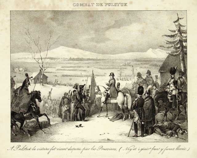 Napoleone a cavallo che dirige la battaglia di Pulstuk. Piccole macchie al margine