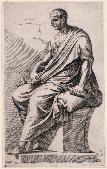 Tavola tratta dal celebre ' Segmenta nobilium signorum et statuarum, quae temporis dentem invidium evasere Urbis aeternae ruinis erepta Typis aeneis ab ce commissa Perpetuae venerationis monumentum, ' Roma, De’ Rossi, 1653 o ante 1691. Formatosi come pittore a Roma negli anni 1620-25 nella bottega di Giovanni Lanfranco, François Perrier dettò il Borgognone (donde il monogramma FPB, con F e P sovrapposte) operò nei primi anni Trenta nell’orbita di Simon Vouet a Parigi, dove ebbe come allievi Le Brun e Dufresnoy. Di nuovo a Roma per un decennio a partire dal 1635, vi realizzò due raccolte di acqueforti dall’antico, i ' Segmenta ' (1638) e le ' Icones et segmenta illustrium e marmore tabularum quae Romae adhuc extant… stampate al suo rientro a Parigi (1645). I ' Segmenta ' riproducono in cento tavole un’ampia silloge di statue antiche “risparmiate dall’invidioso dente del Tempo” presenti nelle principali collezioni romane; le ' Icones ' invece i più noti bassorilievi, in cinquantacinque tavole. Entrambe le opere furono progettate con la fondamentale collaborazione di Giovan Pietro Bellori, massima autorità teorica e storico-artistica del classicismo seicentesco, e di altri eruditi, e appartengono al genere degli atlanti di antiquarie romane diffusi in tutta Europa a partire dalla metà del Cinquecento. L’atlante del Perrier, concepito anzitutto come una sorta di ‘accademia cartacea’ per gli artisti – quasi una versione a stampa di un taccuino di modelli – supportata da una vasta erudizione antiquaria, ebbe una notevole fortuna, testimoniata dalle numerose ristampe e derivazioni lungo tre secoli. Le discrepanze di alcune tavole rispetto alla prima edizione dei ' Segmenta ' (molte risultano in controparte, e si riscontrano diffuse difformità nei tratteggi) corrispondono non a prove di stampa, come ipotizzato da alcuni, ma alla riedizione presso la stamperia romana De’ Rossi, inventariata col titolo di ' Statue insigni di Roma intagliate in acquaforte, e copiate da Francesco Perrier libro in 103 quarti fogli imperiali nel 1677 ' (Le regole della bellezza ' 2012, pp. 9-10) e in seguito ' Indice 1797, p. 4), realizzata con una nuova serie di matrici (oggi conservate presso la Calcografia di Stato) nell’impossibilità di riuso di quelle originali, rientrate in Francia col Perrier. Bellissima prova, impressa su carta vergata coeva, rifilata al rame, in ottimo stato di conservazione. Bibliografia Lorenzo Fatticcioni, ' Le regole della bellezza. Saperi antiquari e teorie dell'Arte nei Segmenta nobilium Signorum et Statuarum di François Perrier, (2012); Gerardo de Simone, ' François Perrier, Segmenta nobilium signorum et statuarum, Roma, De' Rossi 1653; ' con disegni della bottega Baratta ' (2016). Plate taken from the famous ' Segmenta nobilium signorum et statuarum, quae temporis dentem invidium evasere Urbis aeternae ruinis erepta Typis aeneis ab ce commissa Perpetuae venerationis monumentum, Rome, De' Rossi, 1653 or ante 1691. Trained as a painter in Rome in the years 1620-25 in the workshop of Giovanni Lanfranco, François Perrier dictated the Borgognone (whence the monogram FPB, with F and P superimposed) operated in the early thirties in the orbit of Simon Vouet in Paris, where he had as students Le Brun and Dufresnoy. Back in Rome for a decade starting in 1635, he produced two collections of etchings from antiquity, the ' Segmenta ' (1638) and the ' Icones et segmenta illustrium e marmore tabularum quae Romae adhuc extant. printed on his return to Paris (1645). The ' Segmenta ' reproduce in one hundred plates a wide collection of ancient statues "spared by the envious tooth of Time" present in the main Roman collections; the Icones instead the most famous bas-reliefs, in fifty-five plates. Both works were designed with the fundamental collaboration of Giovan Pietro Bellori, the greatest theoretical and historical-artistic authority of seventeenth-century classicism, and other scholars, and belong to the genre of atlases of Roman antiquities spread throughout Europe from the mid-sixteenth century. Perrier's atlas, conceived above all as a sort of 'paper academy' for artists - almost a printed version of a notebook of models - supported by a vast antiquarian erudition, had a considerable fortune, testified by the numerous reprints and derivations over three centuries. The discrepancies of some plates with respect to the first edition of the ' Segmenta ' (many are in counterpart, and there are widespread differences in the hatching) correspond not to proofs, as assumed by some, but to the re-edition at the Roman printing house De 'Rossi, inventoried under the title of ' Statue insigni di Roma intagliate in acquaforte, e copiate da Francesco Perrier libro in 103 quarti fogli imperiali nel 1677 ' (cf, ' Le regole della bellezza ' 2012, pp. 9-10) and later in the ' Indice 1797, p. 4), made with a new set of plates (now preserved at the Rome Calcografia) in the impossibility of reusing the original ones, returned to France with Perrier. Beautiful proof, printed on contemporary laid paper, trimmed in copper, in excellent condition. Bibliografia Lorenzo Fatticcioni, ' Le regole della bellezza. Saperi antiquari e teorie dell'Arte nei Segmenta nobilium Signorum et Statuarum di François Perrier, (2012); Gerardo de Simone, ' François Perrier, Segmenta nobilium signorum et statuarum, Roma, De' Rossi 1653; ' con disegni della bottega Baratta ' (2016). Cfr.