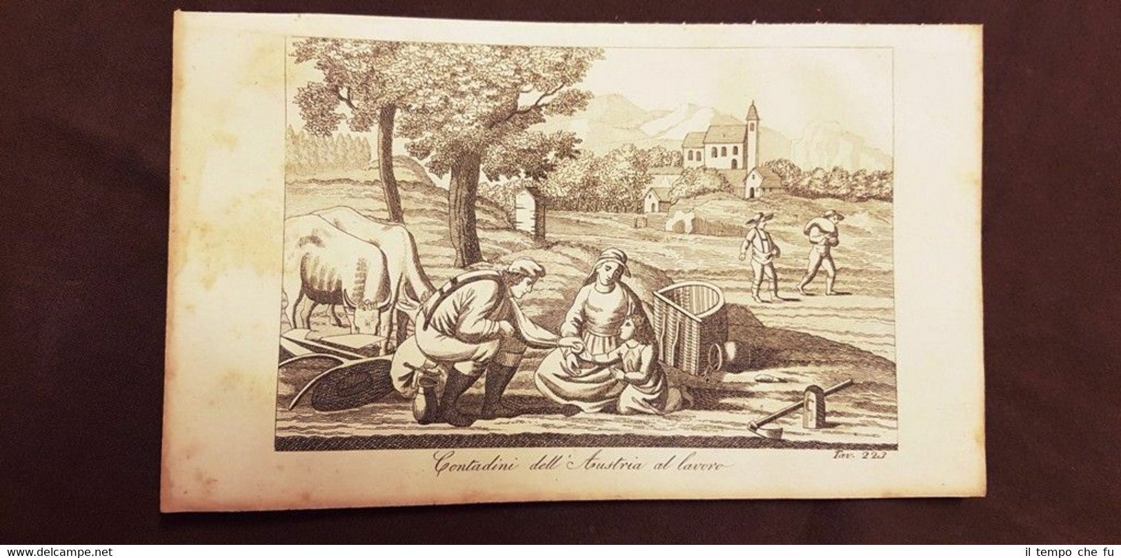 Acquaforte del 1830 Contadini al lavoro in Austria Moda e costume Codice articolo: II1878-060 Dimensioni: Cm 21,00 x 13,00 Tavola estratta dalla rarissima opera edita nel 1830 "Il costume antico e moderno, o storia del governo, della milizia, della religione, delle arti, scienze ed usanze di tutti i popoli antichi e moderni provata coi monumenti dell'antichità e rappresentata cogli analoghi disegni", di Giulio Ferrario. Giulio Ferrario (1767-1847), milanese, fu bibliotecario della Biblioteca Braidense, erudito ed autore di fortunate opere di taglio storico-letterario. La monumentale documentazione degli usi e costumi del mondo, fu compilata dal Ferrario con l'ausilio di numerosi collaboratori fu largamente apprezzata in tutta Europa nonche' piu' volte ristampata e tradotta anche fuori dai confini italiani. Un'autentica miniera di informazioni storiche, geografiche, etnologiche ed antropologiche, anche relative a parti del mondo al tempo ancora scarsamente indagate. Paypal Carta di credito Bonifico bancario Spedizione con posta ordinaria o raccomandata scelta dall'Acquirente nel momento del pagamento Clicca qui per accedere al nostro Store ed al suo sterminato archivio