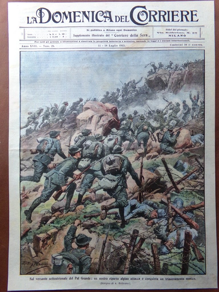 Copertina Domenica Corriere nr. 28 del 1915 WW1 Fronte Pal Grande Trincee Alpini