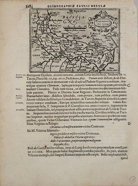 Carta tratta dalla prima edizione della "Cosmographia Universalis" di Paul Merula , stampata ad Amsterdam nel 1605. Le mappe usate per illustrare la prima edizione della Cosmografia di Merula sono realizzate nel 1598 da Jodocus Hondius e Pieter Van den Keere (Kaerius) e quidni utilizzate dall'editore Cornelis Claesz per illustrare lavori di Apian, Linschoten e Merula. Incisione in rame, inserita uin una pagina di testo, in perfette condizioni. Taken from the first edition of "Cosmographia Universalis" by Paul Merula, printed in Amsterdam in 1605.The map was first issued in 1598 by Cornelis Claesz and engraved and realized by Jodocus Hondius and Pietre vand den Keere (Kaerius). Claesz used the plate to illustrate various works he published by Peter Apian, Jan van Linschoten, Paul Merula and others. Copperplate, inset in a page text, very good conditions. Cfr. King pp.80/81