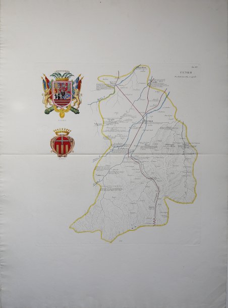 La carta appartiene alla monumentale opera di Pompeo Litta "Famiglie Celebri Italiane" uscita in fascicoli tra il 1819 e il 1900. Le Tavole Genealogiche della Real Casa di Savoia illustrate coi monumenti da Pompeo Litta, è la parte dedicata ai Savoia composta tra il 1839 e il 1845 e risulta sicuramente la più pregiata in quanto straordinariamente ricca di tavole, di grande qualità per la loro coloritura. La parte più significativa del volume sui Savoia sono le 29 carte geografiche raffiguranti i territori dei ducati sabaudi, notevolmente impreziosite dalla presenza dei rispettivi stemmi, magnificamente colorati e rialzati in argento ed oro; le prime due carte forniscono una visione globale degli stati sabaudi; le successive, invece, tratteggiano i confini di ciascun ducato o contea, delineandoli con differenti colori. Incisione al tratto, finemente colorata a mano in epoca, in eccellente stato di conservazione. The map belongs to the monumental work of Pompeo Litta "Famigli Celebri Italiane", issued in different instalments between 1819 and 1900. The Tavole Genealogiche (Genealogical plates) della Reale Casa di Savoia, illustrated by Pompeo Litta with monuments, the part dedicated to the Savoy and it has been realized between 1839 and 1845, can be considered the most valuable part, due to the richness of the plates and the quality of their colour. The most important part of the Savoy volume are the 29 maps depicting the territories of their duchy, enriched by the coat-of arms, coloured and raised on silver and gold; the first two maps give a global vision of the Savoy estate; the following ones depict the borders of every duchy and county, outlining them with different colours. Outline etching, fine contemporary hand colour, in excellent condition. Cfr.