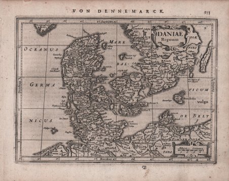 Mappa in miniatura tratta dall’Atlas minor, Das ist: Eine kurtze, jedoch gründliche Beschreibung der gantzen Weldt. ' Incisa da Abraham Goos o Pieter van den Keere, venne pubblicata per la prima volta da Johannes Janssonius nel 1628. L'Atlas Minor ' di Gerard Mercator fu concepito da Jodocus Hondius nel 1607 come edizione ridotta del popolare ' Atlas ' di Mercator in folio. L'Atlas Minor ' doveva essere più grande di un atlante tascabile, ma più piccolo di un atlante in folio, e aveva un prezzo adeguato a raggiungere una diversa clientela. Ci furono tre diverse edizioni dell'Atlas Minor ' pubblicate da autori diversi, ognuna con una nuova serie di mappe incise in rame. Jodocus Hondius pubblicò la prima edizione tra il 1607 e il 1621, e successivamente vendette le tavole in rame ad editori inglesi; tra il 1635-39 fu pubblicata un'edizione inglese dell’opera utilizzando molte delle tavole originali. Johannes Janssonius volle competere anche nel mercato dei “piccoli” atlanti e fece incidere nuove lastre di rame da Pieter van den Keere e Abraham Goos per la propria edizione dell’Atlas Minor, pubblicata in più lingue tra il 1628 e il 1651 La terza e ultima versione fu pubblicata da Jan Evertsz. Cloppenburch (o Cloppenburg) tra il 1630 e il 1734, con nuove mappe incise principalmente sempre da Pieter van den Keere. "Shortly after the publication of the big folio-atlases the need was apparantly felt for a smaller-sized atlas, one that would be handier, and, above all, cheaper, so that a larger public might have access to the use of maps. The publication of the ' Atlas Minor ' appeared to be a great success for Hondius; the first Latin edition was in great demand. The copperplates of the first atlases minor were most almost certainly engraved by Jodocus Hondius himself. After 1621, the copperplates of the ' Atlas Minor ' were sold to a London editor. Firstly, they appeared in ' Purchas his Pilgrinies, printed in 1625 by William Stansby for Henry Featherstone. Next they were used for the translation of the Mercator-atlas, printed in small folio under the title ' Historia mundi, or Mercators atlas, ' by Thomas Cotes for Michael Sparke and Samuel Cartwight in 1635". (cf. Koeman II Me 191). "As with the ' Theatrum ' of Abraham Ortelius, Jodocus Hondius planned a reduced size version of Gerard Mercator's folio atlas. Just one year after his first edition he published his Latin text ' Atlas Minor ' in collaboration with Jan Jansz. and Cormelis Claesz. The arrangement between these three is not understood clearly but Hondius is believed to have been the owner of the copperplates. Cartographically this is taken directly from the folio maps by Hondius in 1606 [.]. with the inevitable loss of detail due to the reduction” (cf. Burden, ' The Mapping of North America, 153). ' Johannes Janssonius (1588-1664) era figlio di un omonimo tipografo, editore e libraio di Arnhem. Nel 1612 sposò Elisabetta Hondius, figlia di Jodocus Hondius I, e nello stesso anno fondò una propria casa editrice ad Amsterdam. Alla morte di Jodocus I, nello stesso anno, iniziò ad aiutare la vedova di Hondius a continuare la pubblicazione dell'atlante di Mercatore e Hondius. Sia la vedova di Hondius, Colette, sia il figlio maggiore di Hondius, Jodocus II, morirono nel 1629; Janssonius unì quindi le forze con il figlio minore di Hondius, Henricus, per una revisione dell'Atlas Novus, a partire dal 1638. Acquaforte, in ottimo stato di conservazione. Dall’edizione tedesca dell’Atlas Minor, stampata ad Amsterdam nel 1648. Bibliografia Koeman IIIB, 352:33. A miniature map taken from ' Atlas minor, Das ist: Eine kurtze, jedoch gründliche Beschreibung der gantzen Weldt. ' Engraved by Abraham Goos or Pieter van den Keere, first issued by Johannes Janssonius in 1628. Mercator's ' Atlas Minor ' was conceived by Jodocus Hondius in 1607 as a reduced-sized edition of the popular folio-sized Mercator Atlas. The ' Atlas Minor ' was intended to be larger than a pocket atlas, yet smaller than the folio atlas, and were priced accordingly to reach a new market. There were three different editions of the ' Atlas Minor ' published by different authors, each with a new set of copperplates. Jodocus Hondius published the first edition from 1607-1621, and subsequently sold the copperplates to parties in England between 1621-1625, after which an English edition was published using many of the original plates in 1635-39. Johannes Jansson wanted to compete in the small atlas market as well, and had new copperplates engraved by Pieter van den Keere and Abraham Goos for his own edition published in multiple languages between 1628-51. The third and final edition was published by Jan Evertsz. Cloppenburch (or Cloppenburg) between 1630-1734 (some without text), with new maps engraved primarily by Pieter van den Keere. "Shortly after the publication of the big folio-atlases the need was apparantly felt for a smaller-sized atlas, one that would be handier, and, above all, cheaper, so that a larger public might have access to the use of maps. The publication of the ' Atlas Minor ' appeared to be a great success for Hondius; the first Latin edition was in great demand. The copperplates of the first atlases minor were most almost certainly engraved by Jodocus Hondius himself. After 1621, the copperplates of the ' Atlas Minor ' were sold to a London editor. Firstly, they appeared in ' Purchas his Pilgrinies, printed in 1625 by William Stansby for Henry Featherstone. Next they were used for the translation of the Mercator-atlas, printed in small folio under the title ' Historia mundi, or Mercators atlas, ' by Thomas Cotes for Michael Sparke and Samuel Cartwight in 1635". (cf. Koeman II Me 191). "As with the ' Theatrum ' of Abraham Ortelius, Jodocus Hondius planned a reduced size version of Gerard Mercator's folio atlas. Just one year after his first edition he published his Latin text ' Atlas Minor ' in collaboration with Jan Jansz. and Cormelis Claesz