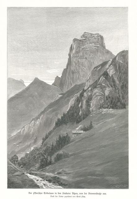 Der Pflerscher Tribulaun in den Stubaier Alpen, von der Brennerstrasse aus. | Stampe | Weber J. J., Weber J. J.