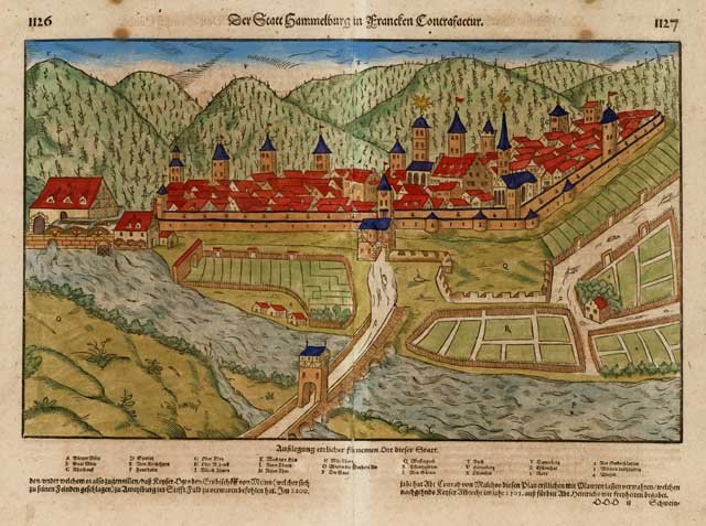 Der Statt Hammelburg in Francfen Contrafactur | Stampe | Munster Sebastian (Ingelheim1488 - Basilea1552), Munster Sebastian