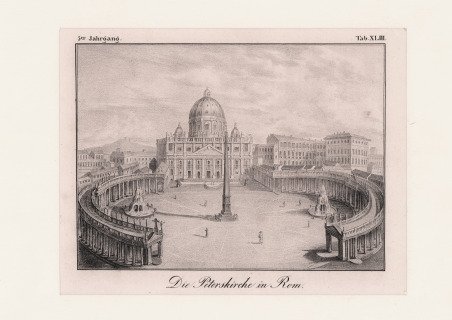 Bella veduta di S. Pietro tratta da Das Karlsruher Unterhaltungsblatt, 1831, celebre cronaca della città di Karlsruhe. Litografia, in ottimo stato di conservazione. Bella veduta di S. Pietro tratta da ' Das Karlsruher Unterhaltungsblatt, 1831, celebre cronaca della città di Karlsruhe. Litografia, in ottimo stato di conservazione. ' Cfr.