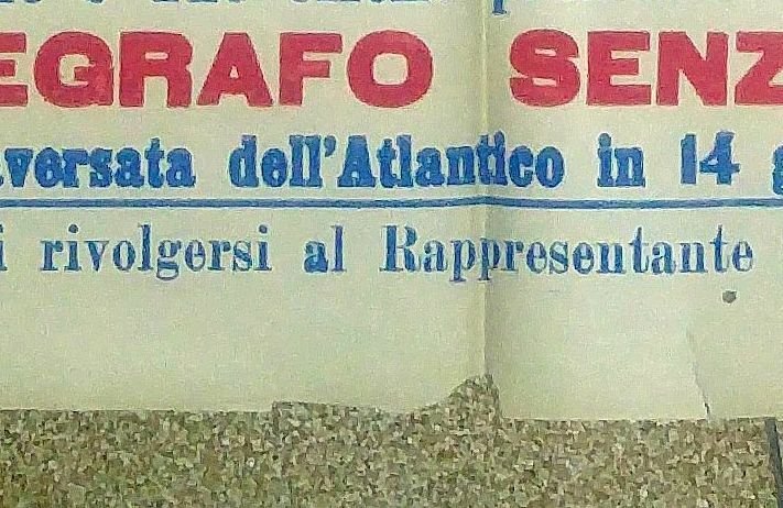 Manifesto originale d'epoca di grandi dimensioni con indicazioni e tariffe di viaggio da Napoli a varie destinazioni del sud America, partenza nel giugno 1910.