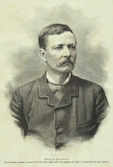Ritratto dell’esploratore Henry Morton Stanley (Denbigh 1841 - Londra 1904), noto per la spedizione in Africa alla ricerca del medico britannico David Livingstone (Blantyre 1813 - Lago Bangweulu 1873) nel 1869 e di Emin Pascià (1840-1892), medico esploratore tedesco, nel 1886. Testo al retro