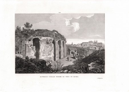 Veduta pubblicata nel noto ' Atlante illustrativo, ossia Raccolta dei principali monumenti italiani antichi, del Medio evo e moderni, e di alcune vedute pittoriche… ' di Attilio Zuccagni-Orlandini, edito in 3 tomi nel 1845 a Firenze, per servire di corredo alla ' Corografia fisica, storica e statistica dell'Italia…, opera in 12 volumi, pubblicati dal 1837 al 1845, corredata - oltre che dall'Atlante illustrativo ' sopra descritto - anche da un ' Atlante geografico degli Stati italiani, ' in due tomi. Attilio Zuccagni Orlandini (1784-1872) nacque a Fiesole con il nome di Giuseppe Orlandini. In seguito all’adozione da parte del facoltoso zio materno Attilio Zuccagni (1754-1807), botanico e georgofilo, assunse il nome di Attilio Zuccagni Orlandini. La sua più importante opera è la relazione geografico-cartografica di tutti gli Stati preunitari italiani, la grandiosa ' Corografia fisica, storica e statistica dell’Italia e delle sue Isole ' (Firenze 1835-1845), in dodici volumi per diciannove tomi, con un volume introduttivo sull’intera penisola italiana. L’opera costituì la summa delle centinaia di opere geografiche generali, regionali e locali allora disponibili e presentava, per ogni Stato preunitario, la trattazione fisica, storica, topografica e un inquadramento statistico. Nel 1844-45, la ' Corografia ' fu arricchita con cinque volumi di cartografie, vedute e altre illustrazioni di luoghi e monumenti: ' Atlante geografico degli Stati italiani delineato sopra le migliori e più moderne mappe ' (due volumi con 144 tavole inclusa la grande carta della penisola in 15 fogli) e ' Atlante illustrativo ossia raccolta dei principali monumenti italiani antichi, del medio evo e moderni e di alcune vedute pittoriche ' (tre volumi con 413 illustrazioni, stampate su 269 fogli). Le tavole furono incise, sempre a Firenze, in due apposite officine, da quattro valenti artisti lombardi (Vittorio Angeli, Giacinto Maina, Pietro Manzoni e Giuseppe Pozzi). Soprattutto il primo dei due atlanti rappresenta, ancora oggi, una pietra miliare nella storia della cartografia e dell’iconografia geografica italiana. Fu veramente ‘un’ardua impresa’, dal momento che spesso mancavano ancora (come, ad esempio, per il ' Ducato di Lucca ' e lo ' Stato Pontificio) prodotti cartografici compiutamente geometrici. I due prodotti furono presentati ai Georgofili nel 1843 e nel 1844, insieme alla mappa della Repubblica di San Marino. L’opera si rivelò oltremodo costosa e non ottenne il successo commerciale sperato, ma servì da base per tante altre iniziative editoriali successive che vi attinsero, talora senza neppure rispettarne i diritti d’autore. ' Incisione su rame all'acquaforte, in ottimo stato di conservazione. ' Bibliografia: Anna Guarducci - ' Dizionario Biografico degli Italiani ' - Volume 100 (2020). View published in the famous ' Atlante illustrativo, ossia Raccolta dei principali monumenti italiani antichi, del Medio evo e moderni, e di alcune vedute pittoriche. di Attilio Zuccagni-Orlandini, published in 3 volumes in Florence, 1845, to accompany the ' Corografia fisica, storica e statistica dell'Italia., a work in 12 volumes, published from 1837 to 1845, accompanied - in addition to the Atlante illustrativo described above - also by a ' Atlante geografico degli Stati italiani, in two volumes. Attilio Zuccagni Orlandini (1784-1872) was born in Fiesole under the name of Giuseppe Orlandini. Following adoption by his wealthy maternal uncle Attilio Zuccagni (1754-1807), a botanist and georgofile, he took the name Attilio Zuccagni Orlandini. His most important work is the geographic-cartographic report of all the pre-unification Italian states, the great ' Corografia fisica, storica e statistica dell'Italia e delle sue Isole ' (Florence 1835-1845), in twelve volumes for nineteen tomes, with an introductory volume on the entire Italian peninsula. The work constituted the sum of hundreds of general, regional and local geographic works then available and presented, for each pre-unification state, the physical, historical, topographical and statistical framework. In 1844-45, the ' Corografia ' was enriched with five volumes of maps, views and other illustrations of places and monuments: ' Atlante geografico degli Stati italiani delineato sopra le migliori e più moderne mappe ' (two volumes with 144 plates including the large map of the peninsula in 15 sheets) and ' Atlante illustrativo ossia raccolta dei principali monumenti italiani antichi, del medio evo e moderni e di alcune vedute pittoriche ' (three volumes with 413 illustrations, printed on 269 sheets). The plates were engraved, again in Florence, in two special workshops, by four talented Lombard artists (Vittorio Angeli, Giacinto Maina, Pietro Manzoni and Giuseppe Pozzi). Especially the first of the two atlases represents, even today, a milestone in the history of cartography and Italian geographic iconography. It was truly 'an arduous undertaking', since cartographic products were often still lacking (as, for example, for the Duchy of Lucca and the Papal States) fully geometric. The two products were presented to the Georgofili in 1843 and 1844, along with the map of the Republic of San Marino. The work proved to be very expensive and did not achieve the commercial success hoped for, but served as a basis for many other subsequent publishing initiatives that drew on it, sometimes without even respecting the copyright. ' Etching, in excellent condition. ' Literature: Anna Guarducci - ' Dizionario Biografico degli Italiani ' - Volume 100 (2020). Cfr.