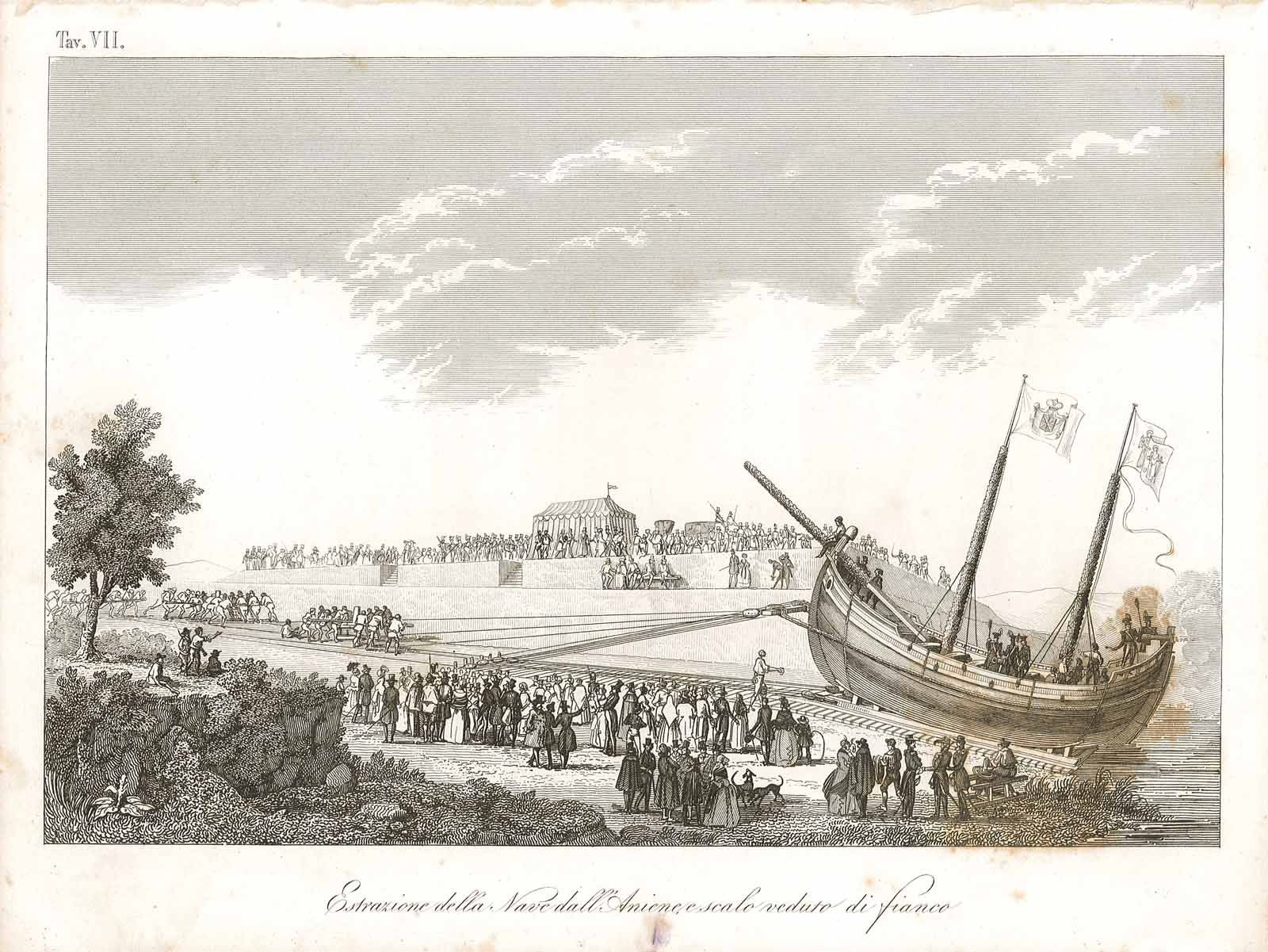 Estrazione della Nave dall'Aniene e scalo veduto di fianco