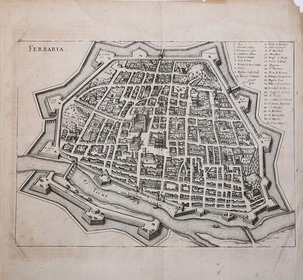 Veduta a volo d’uccello delle citta per la prima volta inserita in ' ITINERARIUM ITALIAE NOV-ANTIQUAE: ODER, RAISS-BESCHREIBUNG DURCH ITALIEN … FRANCOFORTE: MATTHAUS MERIAN, 1640 ' di Martin Zeiler, opera illustrata dalle tavole di Mattheus Merian.Successivamente la troviamo inserita in alcune edizioni della ' Newe archontologia cosmica ' del Merian e nella successiva ristampa dell'opera sull'Italia, intitolata ' Topographia Italiae ' del 1688. Matthäus Merian il vecchio (1593-1650) incisore svizzero nativo di Basilea, lavorò a Francoforte dove ebbe modo di lavorare nella bottega fondata da Theodor de Bry. Merian si segnalò, tanto da sposare Maria Magdalena de Bry, figlia di Johann Theodore de Bry, e dal 1625 circa da prendere in mano l'azienda, dandole un notevole incremento ed occupandosi in particolare dello sviluppo dei libri di topografia e di viaggi. Nella tipografia Merian lavorarono anche i figli Kaspar e soprattutto il quotato Matthaeus il giovane, i quali dopo la morte del padre proseguirono con immutato successo la gestione dell'attività che continuò fino al 1727. Nel 1638 Merian stampò la Neuwe Archontologia cosmica, das ist, Beschreibung aller Kaÿserthumben, Königreichen und Republicken der gantzen Welt opera sulla descrizione del Mondo già uscita dieci anni prima con una veste modesta che Merian rivoluzionò arricchendola con 98 tavole alcune delle quali a doppio foglio. L'Archontologia conobbe altre quattro edizioni fino al 1695 con testo o in latino o in tedesco, non omogenee per numero e tipologia di incisioni inserite. Nel 1640 venne pubblicato Itinerarium Italiæ Nov-antiquæ scritto da Martin Zeiller, ristampato nel 1688 col titolo Topographiæ Italiæ. Incisione in rame, in ottimo stato di conservazione. Bird's eye view of the cities for the first time included in ' ITINERARIUM ITALIAE NOV-ANTIQUAE: ODER, RAISS-BESCHREIBUNG DURCH ITALIEN . FRANKFURT: MATTHAUS MERIAN, 1640 ' by Martin Zeiler, work illustrated by the plates of Mattheus Merian. Later we find it included in some editions of the ' Newe archontologia cosmica ' of Merian and in the subsequent reprint of the work on Italy, entitled ' Topographia Italiae ' of 1688. Matthäus Merian the Elder (1593-1650) Swiss engraver native of Basel, worked in Frankfurt where he was able to work in the workshop founded by Theodor de Bry. Merian distinguished himself, so much so that he married Maria Magdalena de Bry, daughter of Johann Theodore de Bry, and from about 1625 he took over the company, giving it a considerable increase and dealing in particular with the development of topography and travel books. The Kaspar sons and above all the renowned Matthaeus the younger also worked in the Merian typography, who after the death of their father continued with unchanged success the management of the business which continued until 1727. In 1638 Merian printed the Neuwe Archontologia cosmica, das ist, Beschreibung aller Kaÿserthumben, Königreichen und Republicken der gantzen Welt works on the description of the World already published ten years earlier with a modest look that Merian revolutionized by enriching it with 98 tables, some of which are double sheets. The Archontologia went through four other editions up to 1695 with text either in Latin or in German, not homogeneous in terms of the number and type of engravings inserted. In 1640 Itinerarium Italiæ Nov-antiquæ written by Martin Zeiller was published, reprinted in 1688 with the title Topographiæ Italiæ. Copper engraving, in excellent condition. Cfr. D. Cremonini, L’Italia nelle vedute e carte geografiche dal 1493 al 1894 libri di viaggi e atlanti, 1996, pp.37 e 64.