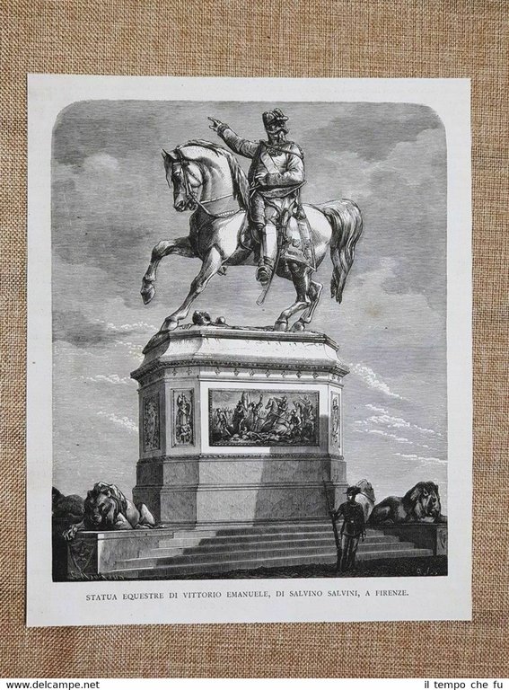 Rara stampa estratta da pubblicazione del 1878 Firenze 1 giugno 1862 Inaugurazione della Statua equestre a Re Vittorio Emanuele II di Savoia Scultore Salvino Salvini Dimensioni: Cm 20,00 x 23,00 Codice prodotto: II1885-107 Qualora vogliate delle scansioni migliori contattateci, soddisferemo ogni vostra richiesta. Paypal Carta di credito Bonifico bancario Accuratamente adagiate su un cartoncino e protette da pellicola trasparente rigida, il tutto viene inserito dentro plico di adeguate dimensioni per proteggerne l'integrità.