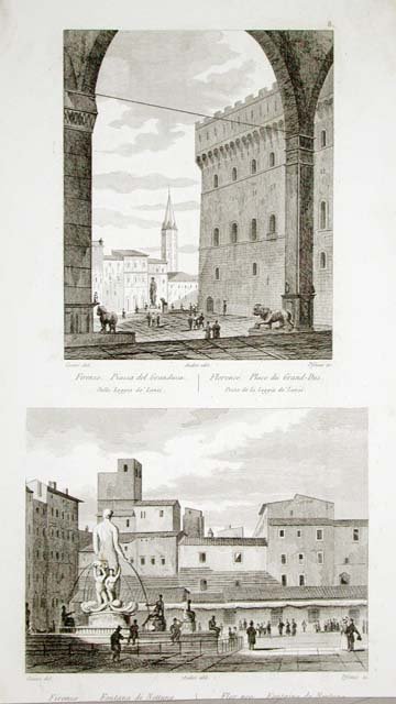 Firenze. Piazza del Granduca dalla Loggia de'Lanzi - Fontana di Nettuno | Stampe | Audot edit., Audot edit.