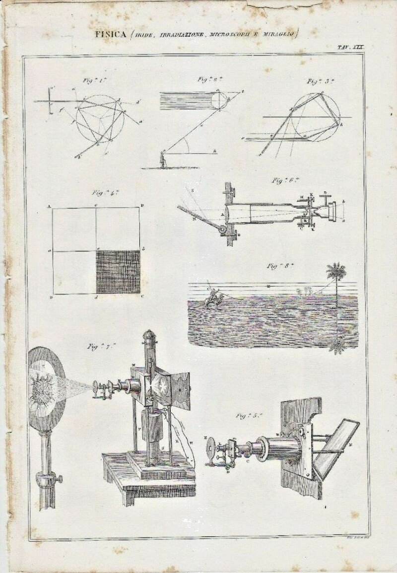 FISICA IRIDE IRRADIAZIONE MICROSCOPI MIRAGLIO Incisione Stampa 1866 Antica
