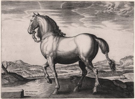 Tavola tratta da "Equile Ioannis Austriaci Caroli V. Imp. F. In quoquo omnis generis generosissi: morum equorum equorum ex variis orbis partibus insignis delectus. Ad vivum omnes delineati à celeberrimo Pictore Iohane Stradano Belga Brugensi et à Philippo Galleo editi", una raccolta di 40 tavole raffiguranti le varie razze equine presenti nella scuderia di Don Giovanni d'Austria pubblicata ad Anversa da Philip Galle.Le opere sono tratte da disegni di Jan van der Straet, detto Stradano o Stradanus (Bruges 1523–1605 Firenze); la serie venne iniziata da Hieronymus Wierix, mnetre il forntespizio reca la firma di Adriaen Collaert.Bulino, privo della firma dell'incisore. Magnifica prova, ricca di toni, impressa su carta vergata coeva e rifilata alla liena marginale, in ottimo stato di conservazione.Bibliogrfaia: A. Baroni and M. Sellink, 'Stradanus 1523-1605: Court artist of the Medici', exh.cat. Groeningemuseum Brugge 2008-2009, Turnhout, 2012, pp.240-241, cat.nos.28-31. Plate taken from "Equile Ioannis Austriaci Caroli V. Imp. F. In quoquo omnis generis generosissi: morum equorum equorum ex variis orbis partibus insignis delectus. Ad vivum omnes delineati à celeberrimo Pictore Iohane Stradano Belga Brugensi et à Philippo Galleo editi", a series of forty horses from the stable of Don John of Austria. After Jan van der Straet, called Stradanus (Netherlandish, Bruges 1523–1605 Florence)The series was begun by Hieronymus Wierix and the title-page is by Adriaen Collaert.Engraving, without signature. A magnific impression, printed on contemporary laid paper, trimmed to the borderline, very good condition.Literature: A. Baroni and M. Sellink, 'Stradanus 1523-1605: Court artist of the Medici', exh.cat. Groeningemuseum Brugge 2008-2009, Turnhout, 2012, pp.240-241, cat.nos.28-31. Cfr. Hollstein, 346; Strauss, 103, I/II.