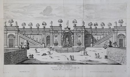 Veduta tratta dalla serie ' Le Fontane di Roma, 1680 circa. Iniziata da Giovan Battista Falda nel 1667 circa, la serie venne ultimata da Giovanni Francesco Venturini, che incise - da propri disegni - le due serie ' Le fontane del giardino estense in Tivoli ' e ' Le fontane ne' palazzi e ne' giardini di Roma con li loro prospetti et ornamenti, pubblicate dall'editore romano G. G. De Rossi (1684 circa) a completamento della celebre opera. Venturini fu incisore, nato a Roma nel 1650, morto dopo il 1710. Il suo nome è specialmente legato alle due serie di stampe, da lui disegnate e incise, ' Le fontane ne' ' palazzi e ne' giardini di Roma ' e ' Le fontane del giardino estense in Tivoli, ' con. ' veduta della cascata del fiume Aniene, pubblicate da Giovanni Giacomo De Rossi, circa il 1684, a completamento della celebre opera di G. B. Falda. Di sua invenzione sono le incisioni per l'opera sulle ' Chiocciole ' di Filippo Buonanni. Collaborò alla raccolta ' Insignium Romae templorum prospectus, e ad altre imprese dell'editoria calcografica del tempo. Incise anche da Polidoro da Caravaggio, dal Nasini, dal Domenichino (Caccia di Diana) e da altri. Acquaforte, con margini, in buono stato di conservazione. Bibliografia TIB ' The Illustrated Bartsch ' - Commentary Volumes. 1978–, cat. n. 47 pt. 2 Commentary pp. 4-29, .005-.055; pp. 41-42, .077-080. View taken from the series ' Le Fontane di Roma, ' 1680 approx. Begun by Giovan Battista Falda in about 1667, the series was completed by Giovanni Francesco Venturini, who engraved - from his own drawings - the two series ' Le fontane del giardino estense in Tivoli ' and ' Le fontane ne' palazzi e ne' giardini di Roma con li loro prospetti et ornamenti, published by the Roman publisher G. G. De Rossi (about 1684) to complete the famous work. Venturini was an engraver, born in Rome in 1650 and died after 1710. His name is especially linked to the two series of prints, drawn and engraved by him, ' Le fontane ne' palazzi e ne' giardini di Roma ' and ' Le ' fontane del giardino estense in Tivoli, con. view of the waterfall of the Aniene River, published by Giovanni Giacomo De Rossi, circa 1684, completing the celebrated work of G. B. Falda. Of his own invention are the engravings for the work on the ' Chiocciole ' by Filippo Buonanni. He collaborated on the collection ' Insignium Romae templorum prospectus, and other enterprises of intaglio publishing of the time. He also engraved by Polidoro da Caravaggio, Nasini, Domenichino (Hunting Diana) and others. Etching, with margins, in good condition. Bibliografia TIB ' The Illustrated Bartsch ' - Commentary Volumes. 1978–, cat. n. 47 pt. 2 Commentary pp. 4-29, .005-.055; pp. 41-42, .077-080. Cfr.