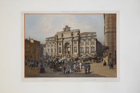 Veduta tratta dalla monumentale opera di Felix Benoist ' Rome dans sa grandeur. Vues, monument ancient et modernes ' stampata a Parigi in 3 volumi, da Henri Charpentier, nel 1870. La pubblicazione, illustrata da 100 litografie, fu preceduta da una campagna di disegni preparatori, a far data dal 1864 sino al 1869, eseguita soprattutto da Félix Benoist e in parte da Philippe Benoist. Alla vigilia del Concilio Ecumenico Vaticano I, l’11 agosto 1869, Pio IX decretava la realizzazione di una ' Esposizione romana delle opere d’ogni arte eseguite per il culto cattolico, che venne inaugurata, il 17 febbraio 1870, nel chiostro della Certosa di Santa Maria degli Angeli. In quell’occasione, vennero presentati i tre volumi in folio ' Rome dans sa grandeur. I volumi, rilegati in modo sfarzoso, con impresso al centro in oro, lo stemma di Pio IX, sono suddivisi in tre sezioni. Il primo volume tratta di ' Roma antica, il secondo, di ' Roma cristiana, ed il terzo, dei monumenti e le realizzazioni della ' Roma moderna. Una visione preziosa della Roma papale alla vigilia della profonda trasformazione di Roma in capitale dell’Italia unita. Un documento che evidenzia la notevole impronta lasciata da Pio IX nella Città Eterna. L’opera rappresenta il capolavoro dell’artista francese, dove ogni veduta è realizzata in litografia tinta, processo ottenuto usando un diverso numero di pietre. Il risultato è un’opera di grande effetto, tanto da porre il Benoist tra la schiera dei più grandi artisti di interni e vedute del suo tempo. Litografia tinta, finemente colorata a mano, in ottimo stato di conservazione. View taken from the monumental work of Felix Benoist ' Rome dans sa grandeur. Vues, monument ancient et modernes ' printed in Paris in 3 volumes, by Henri Charpentier, in 1870. The publication, illustrated by 100 lithographs, was preceded by a campaign of preparatory drawings, from 1864 to 1869, executed mainly by Felix Benoist and partly by Philippe Benoist. On the eve of the First Vatican Ecumenical Council, August 11, 1869, Pius IX decreed the creation of the ' Esposizione romana delle opere d’ogni arte eseguite per il culto cattolico ' (a Roman Exhibition of the works of art created for Catholic worship), which was inaugurated on February 17, 1870, in the cloister of the Charterhouse of Santa Maria degli Angeli. On that occasion, the three volumes in folio ' Rome dans sa grandeur ' were presented. The volumes, magnificently bound, with the coat of arms of Pius IX stamped in gold in the center, are divided into three sections. The first volume deals with ancient Rome, the second with “Christian” Rome, and the third with the monuments and achievements of modern Rome. A precious vision of papal Rome on the eve of the profound transformation of Rome into the capital of united Italy. A document that highlights the remarkable imprint left by Pius IX in the Eternal City. The work represents the masterpiece of the French artist, where each view is made in tinted lithography, a process achieved by using a different number of stones. The result is a work of great effect, so much so as to place Benoist among the ranks of the greatest artists of interiors and views of his time. Tinted lithograph, finely hand-colored, in excellent condition. Cfr.
