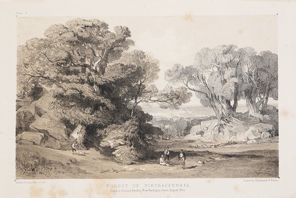 Litografia tinta tratta dal Journals of a Landscape Painter in Southern Calabria, edito a Londra nel 1852. Il viaggio è illustrato da 20 bellissime tavole di vedute, disegnate e litografate in tinta dall'autore. Questi diari furono scritti durante viaggi compiuti nel 1847 nel Regno di Napoli, itinerari poco frequentati dai viaggiatori stranieri dell'epoca. ' Piccole ossidazioni, nel complesso in buono stato di conservazione. Tinted lithograph from the Journals of a Landscape Painter in Southern Calabria, published in London in 1852. The journey is illustrated with 20 beautiful plates of views, drawn and lithographed in colour by the author. These diaries were written during journeys made in 1847 in the Kingdom of Naples, itineraries little frequented by foreign travellers at the time. ' Small oxidations, in good condition. Cfr. Pine-Coffin,847(3) - Fera / Morlicchio “Bibl. Regno di Napoli e Due Sicilie”,I,2013: “illustrato da magnifiche tavole“ - Graesse,IV,131 - Brunet,III,897.