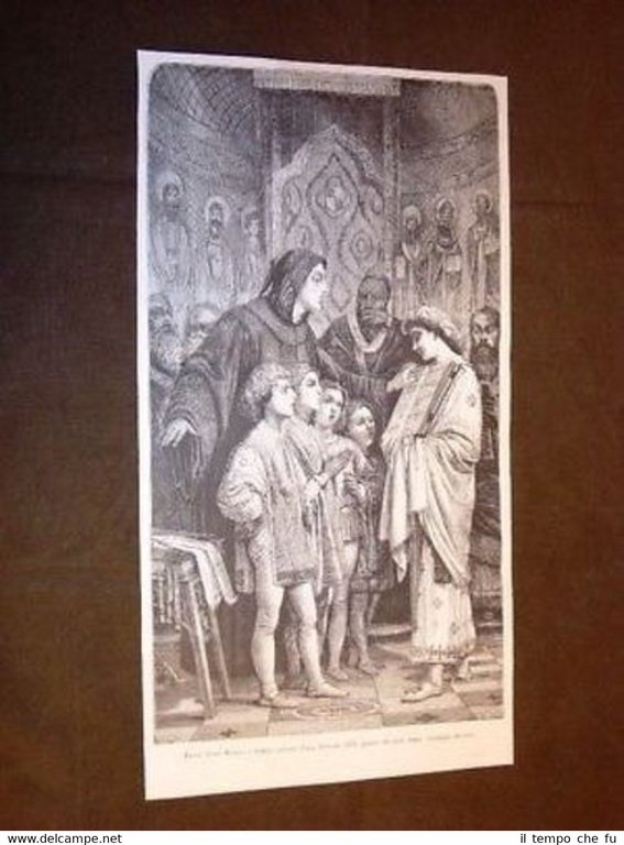 RARA INCISIONE OTTOCENTESCA ESTRATTA DA RIVISTA D'EPOCA Frate Guido Monaco davanti Papa Giovanni XIX Quadro del Prof. Commendatore Giuseppe Bertini II1882-039T Dimensioni Cm 18,00 x 34,00 Qualora vogliate delle scansioni migliori contattateci, soddisferemo ogni vostra richiesta. Paypal Carta di credito Bonifico bancario Accuratamente adagiate su un cartoncino e protette da pellicola trasparente rigida il tutto viene inserito dentro plico di adeguate dimensioni per proteggerne l'integrità