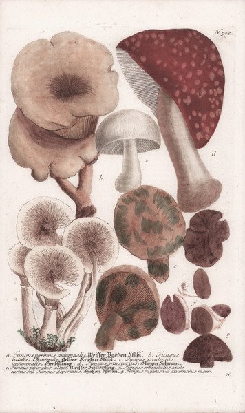 Stampa botanica dalla monumentale opera di Johann Wilhelm Weinmann Phytanthoza Iconographia, sive conspectus aliquot millium, tam indigenarum quam exoticarum, ex quatuor mundi partibus. plantarum, arborum, fruticum, florum, fructuum, fungorum, &c . pubblicata a Regensburg tra il 1734 e il 1745. Mezzotinto con bella coloratura coeva, in ottimo stato di conservazione. Johann Wilhelm Weinmann era un influente speziale, farmacista e botanico di Ratisbona (Regensburg), in Germania. Il suo background è evidente nella composizione e nello stile degli studi botanici in quest'opera, che sono allo stesso tempo scientifici o erboristici e meravigliosamente decorativi. Ha usato la tecnica del mezzatinto per ottenere sottili variazioni tonali di foglie e petali di fiori. Molte delle superbe tavole di questo importante florilegio sono incise su disegni dell'eminente artista botanico Georg Dionysus Ehret, l'influenza dominante nell'arte botanica durante il XVIII secolo. Ehret nacque a Heidelberg, in Germania, e si formò come giardiniere. Divenne il protégé del Margravio di Baden-Durlach, che lo assunse per progettare i giardini della città e del palazzo a Karlsruhe e fare dipinti dei suoi fiori. Dopo aver lasciato l'impiego del Margravio, si trasferì a Ratisbona, dove incontrò Johann Wilhelm Weinmann, e fu ingaggiato per produrre i disegni che per la Phythanoza Iconographia. Bibliografia Pritzel, Georg August. Thesaurus Literaturae Botanicae Omnium Gentium. Milan: 1950; Blunt, Wilfred, rev. by Stearn, William T. The Art of Botanical Illustration. Woodbridge, Suffolk, England: Antique Collectors Club, 1994. pp. 25, 154-55, 159-166, 181; Dunthorne, Gordon. Flower and Fruit Prints of the 18th and Early 19th Centuries. Their History, Makers and Uses, with a Catalogue Raisonne of the Works in Which They are Found. Washington, D.C.: Published by the Author, 1938. Botanical print from Johann Wilhelm Weinmann’s monumental work Phytanthoza Iconographia, sive conspectus aliquot millium, tam indigenarum quam exoticarum, ex quatuor mundi partibus… plantarum, arborum, fruticum, florum, fructuum, fungorum, &c . published in Regensburg 1734-1745. Mezzotint with fine original colouring, good condition. Johann Wilhelm Weinmann was an influential apothecary, pharmacist and botanist in Regensburg, Germany. His background is evident in the composition and style of the botanical studies in this work, which are at once scientific or herbal and beautifully decorative as well. He used mezzotint to achieve subtle tonal variations of leaves and flower petals. Many of the superb plates of this important florilegium are engraved after drawings by the eminent botanical artist Georg Dionysus Ehret, the dominant influence in botanical art during the 18th century. Ehret was born in Heidelberg, Germany, and trained as a gardener. He became the protégé of the Margrave of Baden-Durlach, who hired him to design town and palace gardens at Karlsruhe and make paintings of his flowers. After leaving the Margrave’s employ, relocated in Regensburg, where he met Johann Wilhelm Weinmann, and was engaged to produced drawings for Phythanoza Iconographia. References: Pritzel, Georg August. Thesaurus Literaturae Botanicae Omnium Gentium. Milan: 1950; Blunt, Wilfred, rev. by Stearn, William T. The Art of Botanical Illustration. Woodbridge, Suffolk, England: Antique Collectors Club, 1994. pp. 25, 154-55, 159-166, 181; Dunthorne, Gordon. Flower and Fruit Prints of the 18th and Early 19th Centuries. Their History, Makers and Uses, with a Catalogue Raisonne of the Works in Which They are Found. Washington, D.C.: Published by the Author, 1938. Cfr.