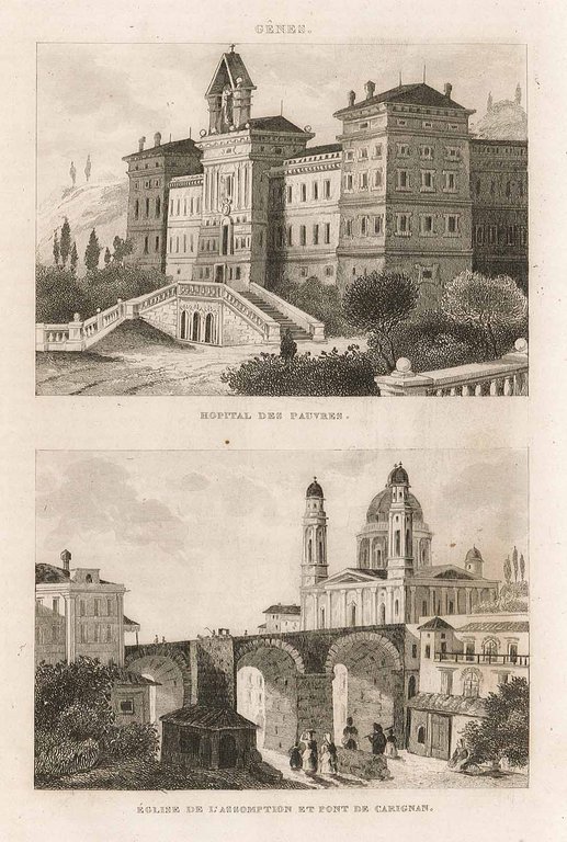 Genes / Hospital des pouvres - Eglise de L'assomption et Pont de Carignan | Stampe | anonimo, anonimo