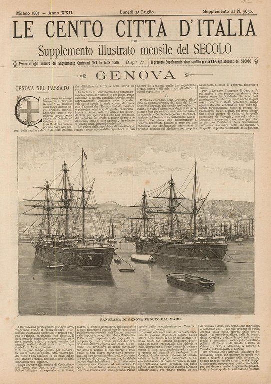 Fascicolo originale completo di 8 pp. pubblicato nella "Serie Prima" della Collana Illustrata delle LE CENTO CITTÀ D'ITALIA, supplemento illustrato del SECOLO edito a Milano da Edoardo Sonzogno Editore, Il fascicolo riporta nel testo interessanti notizie sulla città e dintorni ed è illustrato da numerose vedute xilografiche inserite nella prima pagina, pagine centrali, ultima facciata e le più rappresentative sono:
