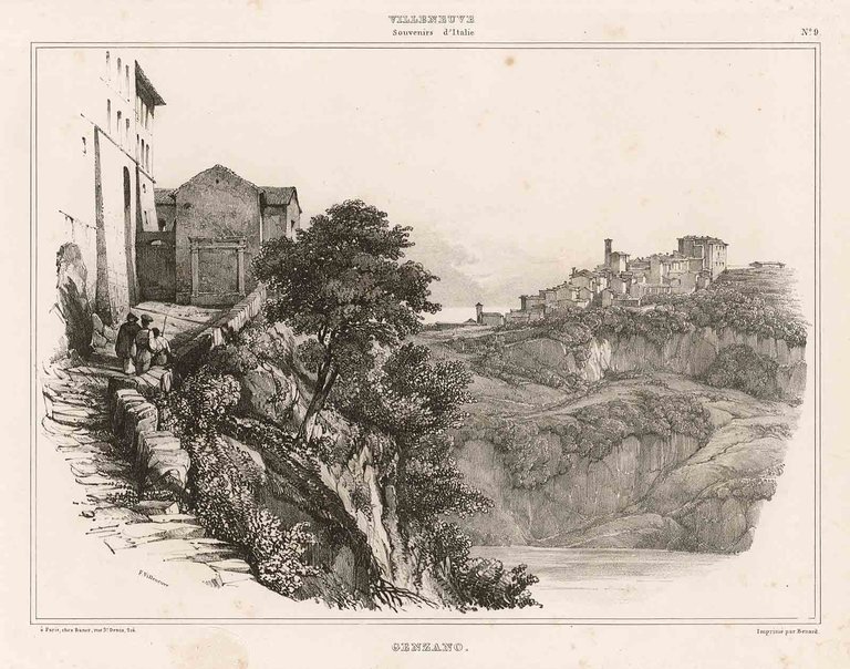 Veduta panoramica della cittadinaVeduta panoramica del borgo, entro doppio filetto. Timbro a secco nel margine inferiore.