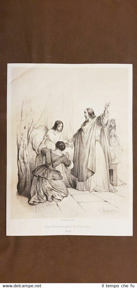 Rara incisione del 1859. Stampata su carta non retroscritta .Incisione che ha quindi oltre 161 anni! Gesù Cristo resuscita il figlio della vedova di Naim Codice articolo: VIP-045 Dimensioni: Cm 21,00 x 29,00 Estratta dalla "Galerie V. Adam" per la pregiata e rara opera "Universite de France - Atlas Universel Historique et Géographique", edita in Parigi nel 1859 da A. Houzé, membro della Società di geografia. Paypal Carta di credito Bonifico bancario Spedizione con posta ordinaria o raccomandata scelta dall'Acquirente nel momento del pagamento Clicca qui per accedere al nostro Store ed al suo sterminato archivio