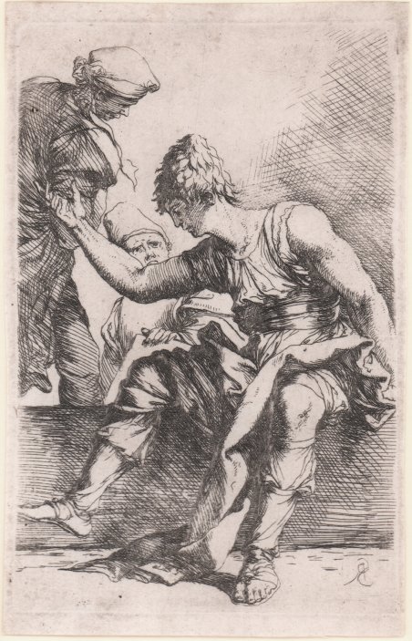Acquaforte e puntasecca, 1656/8 circa, monogrammata in lastra. Della serie conosciuta come ' Diverse Figure. Bellissima prova, ricche di toni, impressa su carta vergata coeva, con sottili margini, in eccellente stato di conservazione. Esemplare in secondo stato, tutte con il monogramma; le prove di primo stato, ove esistano, sono senza monogramma e note in un solo esemplare. Conosciuta con il nome di ' Diverse Figure ' o ' Figurine, rappresentano senza dubbio l’opera grafica più famosa di Salvator Rosa. Già in epoca era considerata un modello per i giovani artisti, e venne più volte copiata sia in Italia che all’estero. Nelle figure dei soldati in costumi esotici oppure d’invenzione il Rosa svolge un tema trattato da molti incisori quali Callot, Della Bella e Filippo Liagno, con il quale aveva un rapporto stretto, e tramite il quale probabilmente arrivò a conoscere i soggetti dei lanzichenecchi del XV secolo di Dürer e Urs Graf. ' Una lettera dell’artista all’amico Ricciardi datata 1656 permette di datare la serie con sicurezza la periodo 1656/8. Bartsch elenca l’opera composta da 61 stampe, mentre Rotili e Wallace descrivano alcune rare variante dei soggetti, poi mai inserite nella serie, portando il numero delle Figurine a 72. Etching and drypoint, circa 1656/8, monogrammed in plate. From the series known as ' Diverse Figure. Beautiful proof, rich in tone, impressed on contemporary laid paper, with thin margins, in excellent condition. Example of the second state, sjowing the Rosa’s monogram; first-state proofs, where they exist, are unmonogrammed and known in only one copy. Known as ' Diverse Figure ' or ' Figurine, they are without doubt the most famous graphic work of Salvator Rosa. Already at that time it was considered a model for young artists, and was copied several times both in Italy and abroad. In the figures of soldiers in exotic or invented costumes, Rosa develops a theme treated by many engravers such as Callot, Della Bella and Filippo Liagno, with whom he had a close relationship, and through whom he probably came to know the subjects of the fifteenth-century Lansquenets by Dürer and Urs Graf. A letter from the artist to his friend Ricciardi dated 1656 allows the series to be dated with certainty to the period 1656/8. Bartsch lists the work as consisting of 61 prints, while Rotili and Wallace describe some rare variants of the subjects, later never included in the series, bringing the number of Figurine to 72. Cfr. Bartsch 71 stato unico; Wallace 70 stato unico