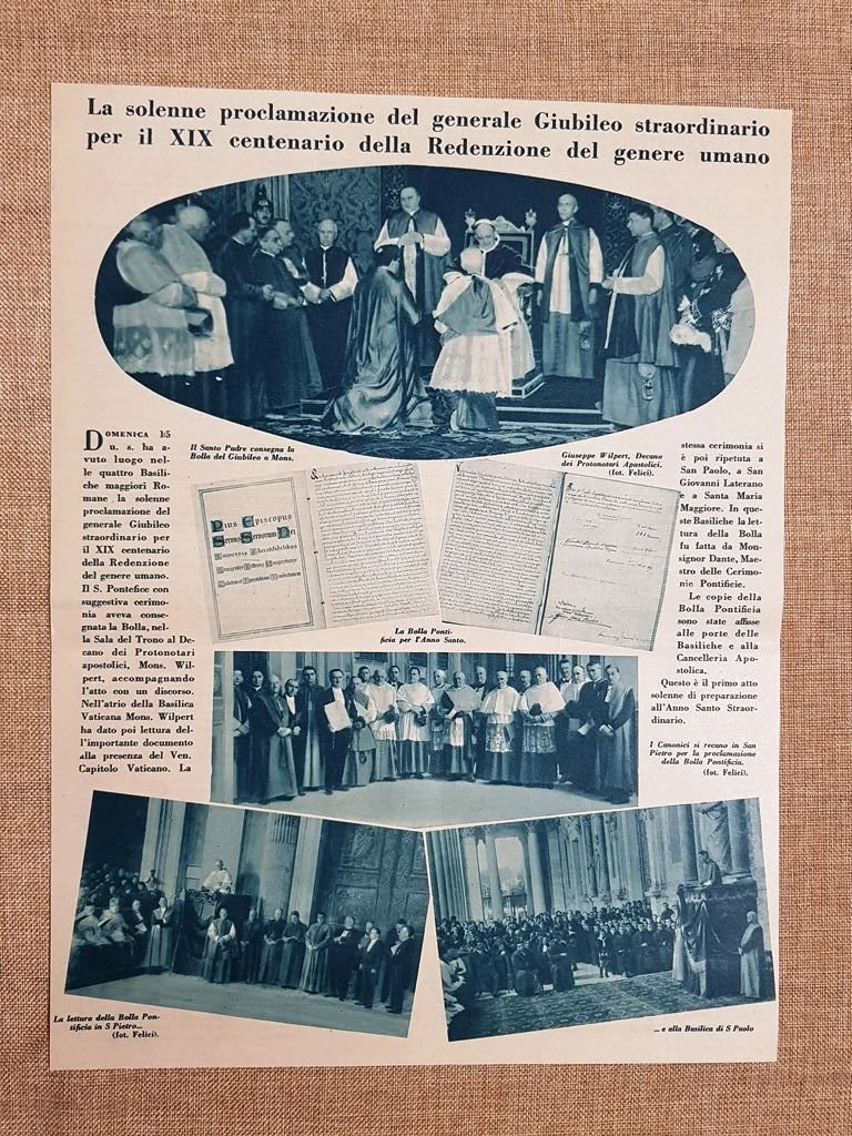 Giubileo straordinario di Papa Pio XI nel 1933 XIX anniversario della Redenzione Rara stampa estratta da pubblicazione anni '30 Il Giubileo straordinario di Papa Pio XI nel 1933 Per il XIX° anniversario della Redenzione Codice prodotto: II1887-002 Dimensioni: Cm 26,00 x 35,00