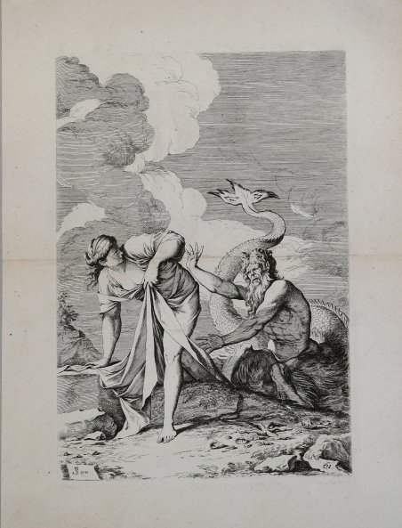 Acquaforte, siglata in lastra con il monogramma di Salvato Rosa. Copia in controparte del lavoro del Rosa. Bellissima prova, impressa su carta vergata coeva, con ampli margini, in perfetto stato di conservazione. Etching, signed with Salvator Rosa monogram. A fine impression, with margins, in very good conditions. Cfr.