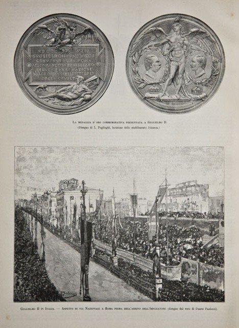 Guglielmo II in Italia / La medaglia d’oro commemorativa presentata a Guglielmo II / Aspetto di via Nazionale a Roma prima dell’arrivo dell’Imperatore