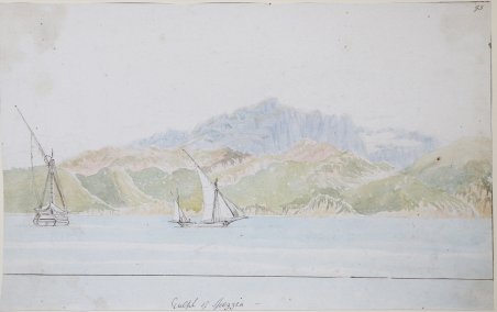 Opera tratta dal taccuino da viaggio dell’ammiraglio inglese William Paget che, come si evince dall’annotazione di pugno dell’autore, egli nomina come Sketches in the South of France, Coast of Italy, Rome, Elba and Lombardy, Lake of Como and Maggiore in the years 1819-20-21. Il gruppo di lavori in nostro possesso riguarda la costa ligure, parte della Toscana con particolare attenzione all’isola d’Elba e un nutrito gruppo di opere sui laghi lombardi. La qualità delle opere risulta varia e contrastata, particolarmente incentrata sulla realizzazione del paesaggio naturistico, raramente arricchito da figure umane. La mano del pittore dilettante è chiara, tuttavia i lavori si fanno apprezzare per il loro aspetto decorativo, per la loro gradevolezza di fondo e soprattutto per l’interesse iconografico dei luoghi raffigurati. ' La tecnica usata è quella del veloce disegno a matita successivamente colorato con l’uso dell’acquarello. Il supporto usato è, prevalentemente, una carta vergata spessa, ovviamente inglese, tipica del primo periodo dell’800. I differenti formati delle opere lasciano presupporre che si tratti di diversi taccuini da viaggio, poi amalgamati dalla storia nel corso dei due secoli trascorsi. Trattandosi di un album da disegno, quasi tutte le opere presentano al verso altri lavori. Taken from the travel notebook of an English admiral, William Paget, who called them Sketches in the South of France, Coast of Italy, Rome, Elba and Lombardy, Lake of Como and Maggiore in the years 1819-20-21 as can be seen from his own handwriting. These works present views of the Liguria region, parts of Tuscany (especially the island of Elba), and a large number dedicated to the lakes of Lombardy. The artistic quality is not the same for all of these water-colours and their author is more interested in the natural scenery than in representing people. It can be seen that they were created by an amateur painter and their greatest interest lies in their iconographical and decorative values. ' From the point of view of artistic techiniques these works were created by first making a preliminary drawing with a pencil, usually on thick laid paper (typically used in early nineteenth-century England), and then painting it with water-colours. Since these works come in different sizes, the notebooks originally might have been more than one. Cfr.