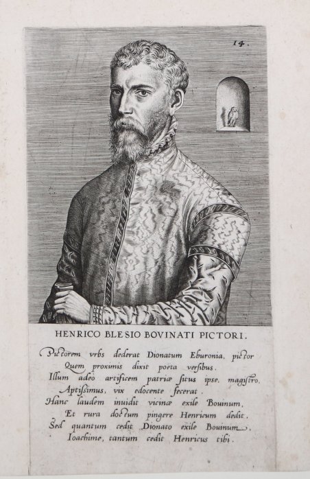 Bulino, 1572 circa, tratta da Pictorum Aliquot Celebrium Germaniae Inferioris Effigies. Primo stato. La prima edizione viene pubblicata dalla vedova di Hieronymus Cock ad Anversa nel 1572. Pictorum aliquot celebrium Germaniae inferioris effiges, una serie di 23 ritratti di artisti dei Paesi Bassi, è pubblicato nel 1575 con imprint “In de Vier Winden”, una delle principali stamperie di Amsterdam. Sebbene alcuni abbiano suggerito che la serie è stata concepita dall'umanista Dominicus Lampsonius, che ha composto versi per accompagnare i ritratti, è più probabile che l'autore sia stato Hieronymus Cock, il fondatore della tipografia con sede “In de Vier Winden”. La serie è apparsa in un momento in cui l'interesse per la vita degli artisti stava crescendo e di conseguenza ha attraversato diverse edizioni e interpretazioni di altri editori. Ottime condizioni. Engraving, 1572 circa, from Pictorum Aliquot Celebrium Germaniae Inferioris Effigies. First state. ' The first edition published by the widow of Hieronymus Cock in Antwerp in 1572. The Pictorum aliquot celebrium Germaniae inferioris effiges, a series of 23 portraits of artists from the Low Countries, published in 1575 by In de Vier Winden, a leading Amsterdam printing house. Although some have suggested that the series was conceived by the humanist Dominicus Lampsonius, who composed verses to accompany the portraits, the author is more likely to have been Hieronymus Cock, the founder of In de Vier Winden. The series appeared at a time when interest in the lives of artists was growing and consequently went through multiple editions and reinventions by other publishers. Very good condition. Cfr.
