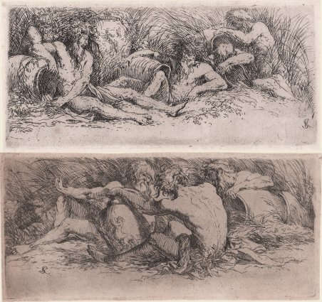 Coppia di incisioni all’acquaforte e puntasecca, circa 1650/60, monogrammate in lastra in basso a destra ed a sinistra rispettivamente. Stato unico. Bellissime prove, impresse su carta vergata coeva priva di filigrana, con sottili margini, in ottimo stato di conservazione. Le due stampe documentano la capacità del Rosa di ricreare un’atmosfera da favola ellenistica, dove le divinità mitologiche sono rappresentate in perfetto equilibrio con la natura circostante. Rotili ritiene che le opere siano databili intorno al 1651/6, sostenendo che simboleggino i fiumi dei quattro continenti, in analogia con la Fontana dei Quattro Fiumi di Piazza Navona realizzata da Gian Lorenzo Bernini, 1648/51. Pair of etchings and drypoint, about 1650/60, signed on plate at the bottom right and left respectively. Only state. Beautiful proof, printed on contemporary laid paper without watermark, with narrow margins, in excellent condition. The two prints documenting the ability of Rosa to recreate a fairytale Hellenistic, where mythological gods are represented in perfect harmony with the surrounding nature. Rotili believes that the works are dated around 1651/6, arguing that symbolize the rivers of the four continents, in analogy with the Fountain of the Four Rivers in Piazza Navona created by Gian Lorenzo Bernini, 1648/51. Cfr. Bartsch 15&16; Rotili 16 & 17; Wallace 96 & 97; Massari, Tra Mito ed Allegoria, p. 438, 163 & 164; Costamagna, Incisori Napoletani del’600, 63 & 64.
