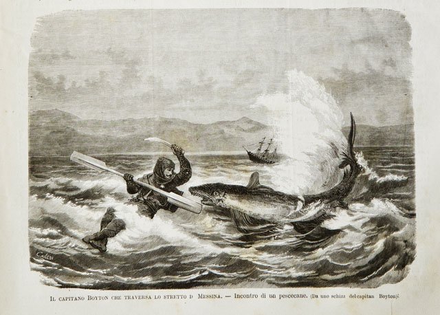 Il capitano Boyton che traversa lo stretto di Messina.- Incontro di un pescecane