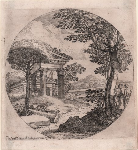 Acquaforte, circa 1647-50, firmata in lastra in basso a sinistra. Stato unico. Giovanni Francesco Grimaldi (Bologna, 1606 – Roma, 28 novembre 1680) è stato un pittore e architetto italiano. Formatosi inizialmente nell'ambito della famiglia dei Carracci, che rappresentavano una delle principali scuole pittoriche bolognesi in quegli anni, si recò poi ancora giovane a Roma. Qui lavorerà a lungo per committenti come il Cardinale Francesco Albani e la famiglia Santacroce. Nel 1638 sposò Eleonora Aloisi, figlia del pittore bolognese Baldassarre (detto il Galanino), morto nello stesso anno e imparentato con i Carracci tramite la moglie. Sempre nel 1638 dipinse la facciata del Palazzo Poli a Roma in occasione della visita in città di Johann Anton principe di Eggenberg, inviato dall'imperatore Ferdinando III d'Asburgo. Collaborò con Alessandro Algardi in varie occasioni, tra cui nell'allestimento dei funerali del marchese Ludovico Facchinetti, ambasciatore di Bologna presso la corte papale, morto nel gennaio 1644. Si occupò anche di altri apparati per feste, onoranze funebri e opere teatrali tra il 1640 e il 1671. Il suo prestigio come artista nell'ambiente romano lo portò a entrare nella prestigiosa Accademia di San Luca già nel 1635 e a rivestire all'interno di tale istituzione vari incarichi (Rettore nel 1656) fino alla più alta carica di Principe nel 1666 dopo avervi rinunciato nel 1658. Nel 1657 entrò anche alla Congregazione dei Virtuosi al Pantheon. Nel 1648 si recò, su invito del Cardinale Giulio Mazzarino, a Parigi, per dipingere alcuni ambienti del Palazzo del Louvre. Grimaldi realizzò oltre cinquanta incisioni di paesaggi, tutti fortemente influenzati dalla formula paesaggistica di Annibale Carracci e Domenichino. Le sue stampe, così come i dipinti e i disegni di vedute, sono caratterizzate da un approccio alla natura estremamente regolare e controllato, enfatizzando le linee orizzontali, verticali e i piani. Alla stregua dei suoi modelli bolognesi, Grimaldi usava spesso masse rocciose o di terra sporgenti, file di alberi posizionate strategicamente, e architetture posizionate nei piani per disporre il suo schema organizzativo. Magnifica prova, ricca di toni, impressa su carta vergata coeva con filigrana “agnello pasquale nel doppio cerchio” (Heawood 2838), con sottili margini, minime ossidazione, per il resto in ottimo stato di conservazione. Etchings, about 1647/50, signed on plate at the bottom left. Only state. Magnificent proof, rich tone, printed on contemporary laid paper with watermark "paschal lamb in double circle" (Heawood 2838), with thin margins, low oxidation, otherwise in excellent condition. Giovanni Francesco Grimaldi (Bologna, 1606 - Rome, November 28, 1680) was an Italian painter and architect. Trained initially within the Carracci family, who represented one of the main schools of painting in Bologna at the time, he then went to Rome while still young. Here he would work for a long time for patrons such as Cardinal Francesco Albani and the Santacroce family. In 1638 he married Eleonora Aloisi, daughter of the Bolognese painter Baldassarre (called the Galanino), who died in the same year and was related to the Carracci through his wife. Also in 1638 he painted the facade of the Palazzo Poli in Rome on the occasion of the visit to the city of Johann Anton prince of Eggenberg, sent by Emperor Ferdinand III of Habsburg. He collaborated with Alessandro Algardi on several occasions, including in the staging of the funeral of Marquis Ludovico Facchinetti, Bologna's ambassador to the papal court, who died in January 1644. He also worked on other apparatuses for festivals, funeral honors, and plays between 1640 and 1671. His prestige as an artist in Roman circles led him to enter the prestigious Accademia di San Luca as early as 1635 and to hold various positions within that institution (Rector in 1656) until the highest position of Prince in 1666 after having renounced it in 1658. In 1657 he also entered the Congregation of the Virtuosi at the Pantheon. In 1648 he went, at the invitation of Cardinal Julius Mazarin, to Paris to paint some rooms in the Louvre Palace. Grimaldi produced over fifty landscape etchings, all strongly influenced by the landscape formula of Annibale Carracci and Domenichino. His prints, as well as his paintings and drawings of views, are characterized by an extremely regular and controlled approach to nature, emphasizing horizontal and vertical lines and planes. In the manner of his Bolognese models, Grimaldi often used protruding rock or earth masses, strategically placed rows of trees, and architectures placed in planes to arrange his organizational scheme. Cfr. Bartsch & Bellini 8.