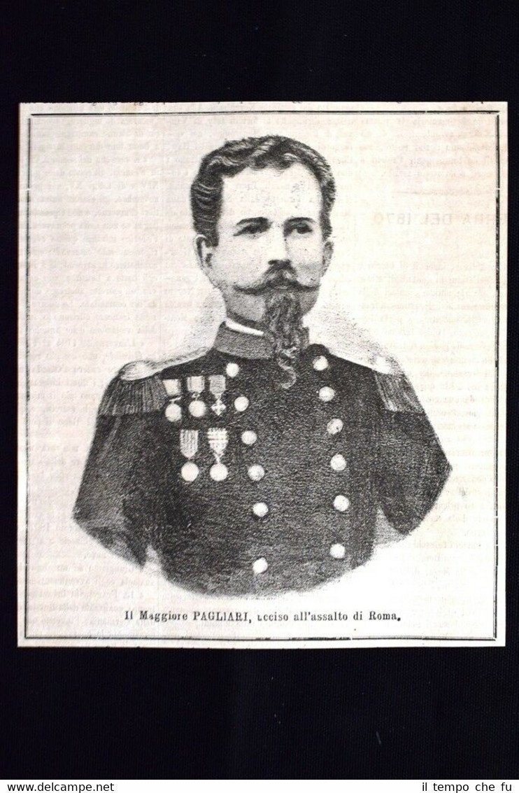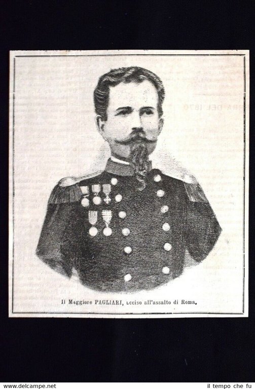 Il Maggiore Giacomo Pagliari, ucciso all'assalto di Roma Incisione del 1870 | Stampe |