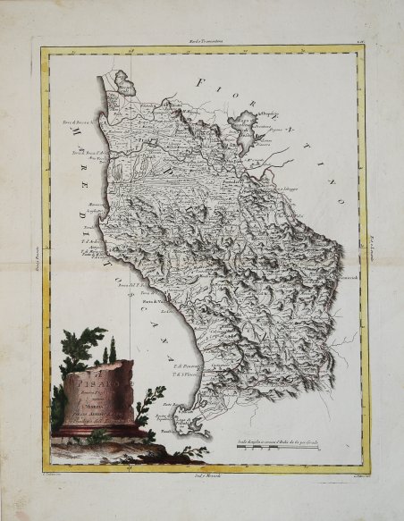 Carta geografica tratta dall’Atlante novissimo, illustrato ed accresciuto sulle osservazioni e scoperte fatte dai più celebri e più recenti geografi. Stampato in quattro volumi da Antonio Zatta tra il 1779 ed il 1785. Atlante fra i più belli e completi mai pubblicati in Italia nel XVIII secolo, l'opera più famosa dello Zatta. L’Atlante Novissimo, come si specifica anche nel titolo, è “accresciuto sulle osservazioni scoperte fatte dai più celebri e più recenti geografi”. Tra le novità più significative vi è la comparsa delle nuove isole scoperte nell'Oceano Pacifico da James Cook e la prima carta italiana della Nuova Zelanda. Le illustrazioni furono ' ideate e disegnate dai suoi collaboratori Giovanni Marco Pitteri, Anton Friedrich Busching, Pietro Antonio Novelli ed incise da Giuliano Zuliani. Il primo tomo dell’atlante è introdotto da un breve saggio di geografia generale dove l’autore definisce in modo sintetico e preciso gli elementi che compongono i reticoli eclittico ed equatoriale usati nelle tavole. Interessante la sezione dove si sofferma ' a descrivere il fenomeno della precessione degli equinozi e quello della variazione ciclica dell'obliquità dell'eclittica. Acquaforte, stampata su carta vergata coeva, in buone condizioni. Map from the Atlante novissimo, illustrato ed accresciuto sulle osservazioni e scoperte fatte dai più celebri e più recenti geografi. Printed in four volumes by Antonio Zatta between 1779 and 1785. ' Atlas among the most beautiful and complete ever published in Italy in the eighteenth century, the most famous work of Zatta. The Atlante Novissimo, as also specified in the title, is “increased on the observations made by the most famous and most recent geographers”. Among the most significant innovations there is the appearance of the new islands discovered in the Pacific Ocean by James Cook and the first Italian map of New Zealand. The illustrations were designed and drawn by his collaborators Giovanni Marco Pitteri, Anton Friedrich Busching, Pietro Antonio Novelli and engraved by Giuliano Zuliani. The first volume of the atlas is introduced by a brief essay of general geography where the author defines in a concise and precise way the elements that make up the ecliptic and equatorial grids used in the tables. Interesting is the section where he pauses to describe the phenomenon of precession of the equinoxes and the cyclical variation of the obliquity of the ecliptic. Etching, printed on contemporary laid paper, in good condition. Cfr.