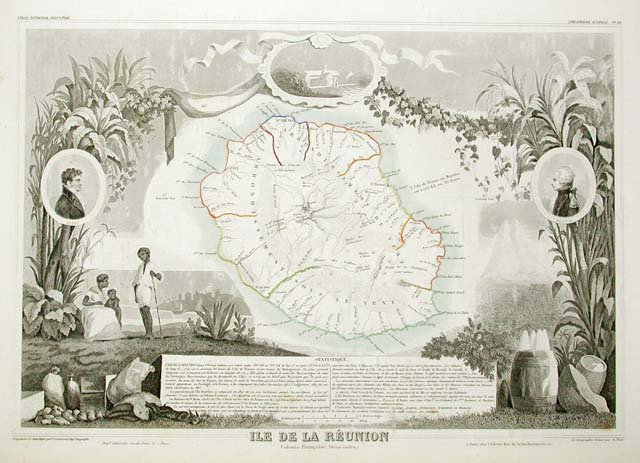 Carta geografica dell'isola, entro ricca e decorativa cornice, confini colorati all'epoca