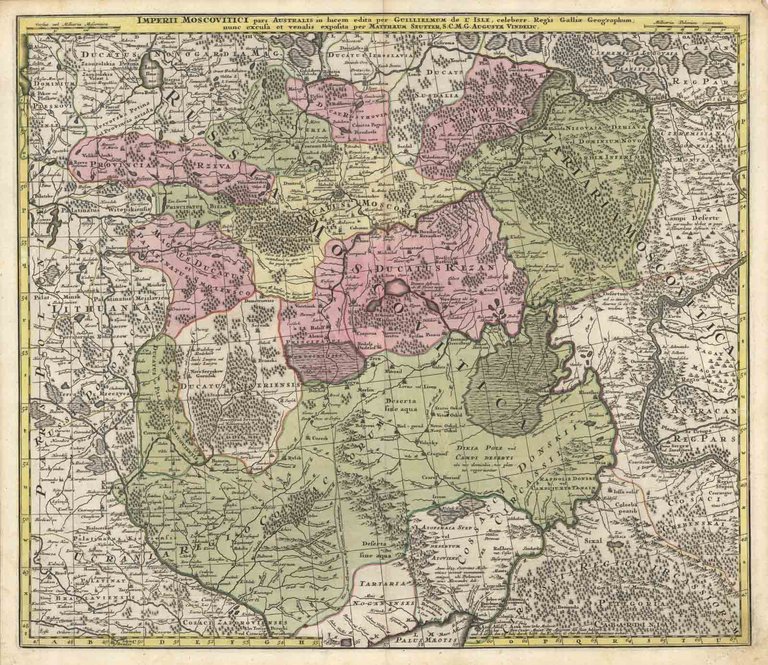 Carta geografica, antica ed originale, in coloritura coeva raffigurante la Russia europea ed Ucraina