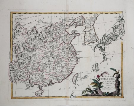 Carta geografica tratta dall’Atlante novissimo, illustrato ed accresciuto sulle osservazioni e scoperte fatte dai più celebri e più recenti geografi. Stampato in quattro volumi da Antonio Zatta tra il 1779 ed il 1785. Atlante fra i più belli e completi mai pubblicati in Italia nel XVIII secolo, l'opera più famosa dello Zatta. L’Atlante Novissimo, come si specifica anche nel titolo, è “accresciuto sulle osservazioni scoperte fatte dai più celebri e più recenti geografi”. Tra le novità più significative vi è la comparsa delle nuove isole scoperte nell'Oceano Pacifico da James Cook e la prima carta italiana della Nuova Zelanda. Le illustrazioni furono ' ideate e disegnate dai suoi collaboratori Giovanni Marco Pitteri, Anton Friedrich Busching, Pietro Antonio Novelli ed incise da Giuliano Zuliani. Il primo tomo dell’atlante è introdotto da un breve saggio di geografia generale dove l’autore definisce in modo sintetico e preciso gli elementi che compongono i reticoli eclittico ed equatoriale usati nelle tavole. Interessante la sezione dove si sofferma ' a descrivere il fenomeno della precessione degli equinozi e quello della variazione ciclica dell'obliquità dell'eclittica. Acquaforte, stampata su carta vergata coeva, coloritura coeva dei contorni, in buone condizioni. Map from the Atlante novissimo, illustrato ed accresciuto sulle osservazioni e scoperte fatte dai più celebri e più recenti geografi. Printed in four volumes by Antonio Zatta between 1779 and 1785. ' Atlas among the most beautiful and complete ever published in Italy in the eighteenth century, the most famous work of Zatta. The Atlante Novissimo, as also specified in the title, is “increased on the observations made by the most famous and most recent geographers”. Among the most significant innovations there is the appearance of the new islands discovered in the Pacific Ocean by James Cook and the first Italian map of New Zealand. The illustrations were designed and drawn by his collaborators Giovanni Marco Pitteri, Anton Friedrich Busching, Pietro Antonio Novelli and engraved by Giuliano Zuliani. The first volume of the atlas is introduced by a brief essay of general geography where the author defines in a concise and precise way the elements that make up the ecliptic and equatorial grids used in the tables. Interesting is the section where he pauses to describe the phenomenon of precession of the equinoxes and the cyclical variation of the obliquity of the ecliptic. Etching, printed on contemporary laid paper, contemporary outline coloring, in good condition. Cfr.