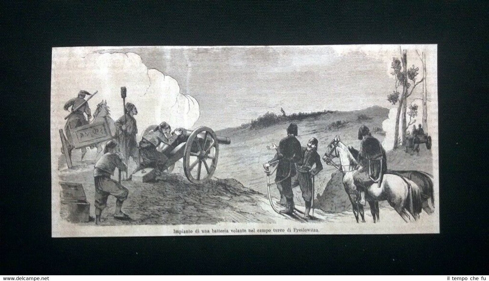 Impianto di batteria volante nel campo turco di Preilowitza Incisione del 1876 | Stampe |