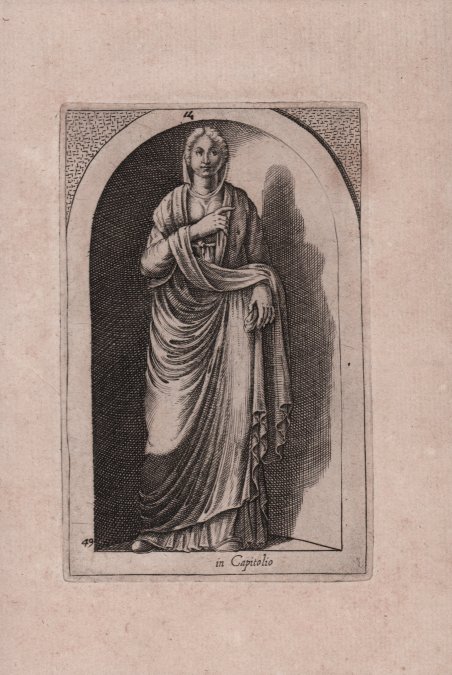 Bulino, circa 1599, della serie ' ANTIQUARUM STATUARUM URBIS ROMAE LIBER PRIMUS, ideata, incisa e stampata a Roma da Philippe Thomassin. Esemplare nel primo stato di due. Philippe Thomassin fu incisore e editore, nativo di Troyes, attivo a Roma a partire dal 1585. Nel 1588 iniziò a pubblicare le sue opere. Nel 1589 iniziò la collaborazione con Jean Turpin; la loro società venne descritta nell’atto di scioglimento del 19 gennaio 1602 come devota alla ‘pratica della pittura e incisione, per l’acquisto e la vendita di incisioni stampate da loro o per loro ordine, per vendita all’estero al dettaglio e all’ingrosso.’. Nel 1590 fu arrestato e interrogato dal Santo Ufficio per un ritratto - che avrebbe inciso - di Enrico IV di Francia. Nei suoi primi anni a Roma lavorò per editori come Claudio Duchetti, Lorenzo Vaccari e Marcello Clodio. Comprò vecchie lastre, anche un gruppo dagli eredi di Aliprando Caprioli nel 1599 per il quale richiese un privilegio di 10 anni a Papa Clemente VIII nello stesso anno. Nel1603 pubblicò due incisioni di Francesco Villamena. Baglione disse che amava concentrarsi di più su soggetti religiosi, ma non in maniera esclusiva, come mostra l’importante collezione ' Antiquarum Statuarum Urbis Romae. Bellissima prova, impressa su carta vergata coeva, con margini, minime ossidazioni, per il resto in ottimo stato di conservazione. Bibliografia E. Bruwaert, ' La vie et les oeuvres de Philippe Thomassin Graveur Troyen ' (1562-1622), 1914, n. 275; The De Rossi family, 497, 534, 1993; Indice delle stampe De Rossi, 17, c. 6, 1735; Indice delle stampe De Rossi, 12, c. 2, 1677; ' L’Antiquarum Statuarum Urbis Romae fra antichità e collezionismo, in “Bollettino d'Arte” volume speciale VI serie 1995. Engraving, circa 1599, from the series ' ANTIQUARUM STATUARUM URBIS ROMAE LIBER PRIMUS, designed, engraved, and printed in Rome by Philippe Thomassin. Example in the first state of two. Philippe Thomassin was an engraver and publisher, a native of Troyes, active in Rome from 1585. In 1588 he began publishing his works. In 1589 he began a partnership with Jean Turpin; their company was described in the act of dissolution of January 19, 1602 as devoted to 'the practice of painting and engraving, for the purchase and sale of engravings printed by them or by their order, for sale abroad at retail and wholesale.' In 1590 he was arrested and interrogated by the Sacro Offizio for a portrait-which he would engraved of Henry IV of France. In his early years in Rome he worked for publishers such as Claudio Duchetti, Lorenzo Vaccari and Marcello Clodio. He bought old plates, even a group from the heirs of Aliprando Caprioli in 1599 for which he requested a 10-year privilege from Pope Clement VIII in the same year. In 1603 he published two engravings by Francesco Villamena. Baglione said he liked to focus more on religious subjects, but not exclusively, as the important collection ' Antiquarum Statuarum Urbis Romae ' shows. Beautiful proof, printed on contemporary laid paper, with margins, minimal oxidation, otherwise in excellent condition. Bibliografia E. Bruwaert, ' La vie et les oeuvres de Philippe Thomassin Graveur Troyen ' (1562-1622), 1914, n. 275; The De Rossi family, 497, 534, 1993; Indice delle stampe De Rossi, 17, c. 6, 1735; Indice delle stampe De Rossi, 12, c. 2, 1677; ' L’Antiquarum Statuarum Urbis Romae fra antichità e collezionismo, in “Bollettino d'Arte” volume speciale VI serie 1995. Cfr.