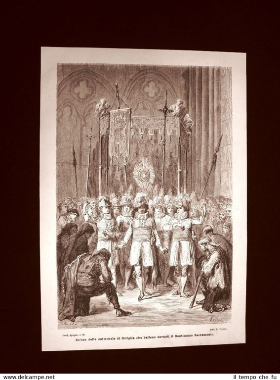 Incisione di Gustave Dorè del 1874 Seises Siviglia Santissimo Sacramento Spagna