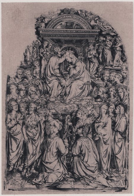 Assunta o Incoronazione della Vergine, bulino, circa 1800, da Maso Finiguerra. Copia “moderna” della composizione di Maso Finiguerra, di cui si conoscono, oltre alla lastra conservata al Museo Nazionale del Bargello (inv. 33 OR), due calchi in zolfo (uno conservato a Parigi, Musée du Louvre, collezione E. de Rothschild; uno a Londra, British Museum, Department of Prints and Drawings) e la prova su carta della BnF. Questa stampa venne realizzata a seguito della scoperta, da parte dell'abate Pietro Zani, presso il Cabinet des estampes di Parigi: nel 1797 l'erudito scoprì tra i materiali provenienti dalla collezione dell'abate Michel de Marolles una prova su carta dalla pace niellata con l'Incoronazione della Vergine, realizzata per il battistero di San Giovanni a Firenze, attribuita a Maso Finiguerra e conservata oggi al Museo Nazionale del Bargello. Da quella impressione su carta fu incisa all'acquaforte una copia fedele, nello stesso verso, da L. Pauquet, che fu pubblicata anche nei Materiali di Zani del 1802, e copiata da J. Gerstner per illustrare il frontespizio dell'edizione del XIII volume del Peintre graveur di A. Bartsch edito nel 1811. Maso Finiguerra (Firenze, 1426 – Firenze, 23 agosto 1464) è stato un incisore e orefice italiano, specializzato nell'arte del niello. Lavorò con Lorenzo Ghiberti alle porte del Battistero di Firenze. Secondo Giorgio Vasari è l'inventore dell'incisione con bulino su metallo che è all'origine della stampa calcografica. Bellissima prova, impressa su carta vergata del XIX secolo, carta leggermente brunita, in ottimo stato di conservazione. Bibliografia Arthur M. Hind, Early Italian engraving, a critical catalogue with complete reproduction of all the prints described. Part I, Florentine engravings and anonymous prints of other schools, 1938, 151; Gisèle Lambert, Les premières gravures italiennes: Quattrocento-début du Cinquecento: inventaire de la collection du département des estampes et de la photographie, Bibliothèque nationale de France, cop. 1999, n° 1. Assumption or Coronation of the Virgin, engraving, ca. 1800 after Maso Finiguerra. A "modern" copy of Maso Finiguerra's composition, of which two sulfur prints (one preserved in Paris, Musée du Louvre, E. de Rothschild collection; one in London, British Museum, Department of Prints and Drawings) and the BnF print proof on paper are known, in addition to the plate preserved in the Museo Nazionale del Bargello (inv. 33 OR). This print was made following a discovery by Abbot Pietro Zani at the Cabinet des estampes in Paris: in 1797 the scholar discovered among the materials from the collection of Abbot Michel de Marolles a proof on paper from the peace niellata with the Coronation of the Virgin, made for the baptistery of San Giovanni in Florence, attributed to Maso Finiguerra and preserved today in the Museo Nazionale del Bargello. From that impression on paper was etched a faithful copy, on the same verso, by L. Pauquet, which was also published in Zani's Materials of 1802, and copied by J. Gerstner to illustrate the frontispiece of the edition of the 13th volume of A. Bartsch's Peintre graveur published in 1811. Maso Finiguerra (Florence, 1426 - Florence, August 23, 1464) was an Italian engraver and goldsmith, specializing in the art of niello. He worked with Lorenzo Ghiberti on the doors of the Baptistery of Florence. According to Giorgio Vasari he is the inventor of engraving with a burin on metal, which is the origin of intaglio printing. Beautiful proof, printed on 19th-century laid paper, paper slightly browned, in very good condition. Bibliografia Arthur M. Hind, Early Italian engraving, a critical catalogue with complete reproduction of all the prints described. Part I, Florentine engravings and anonymous prints of other schools, 1938, 151; Gisèle Lambert, Les premières gravures italiennes: Quattrocento-début du Cinquecento: inventaire de la collection du département des estampes et de la photographie, Bibliothèque nationale de France, cop. 1999, n° 1. ' Cfr.